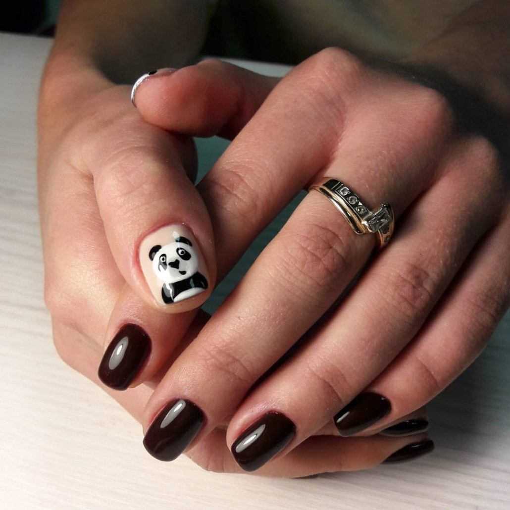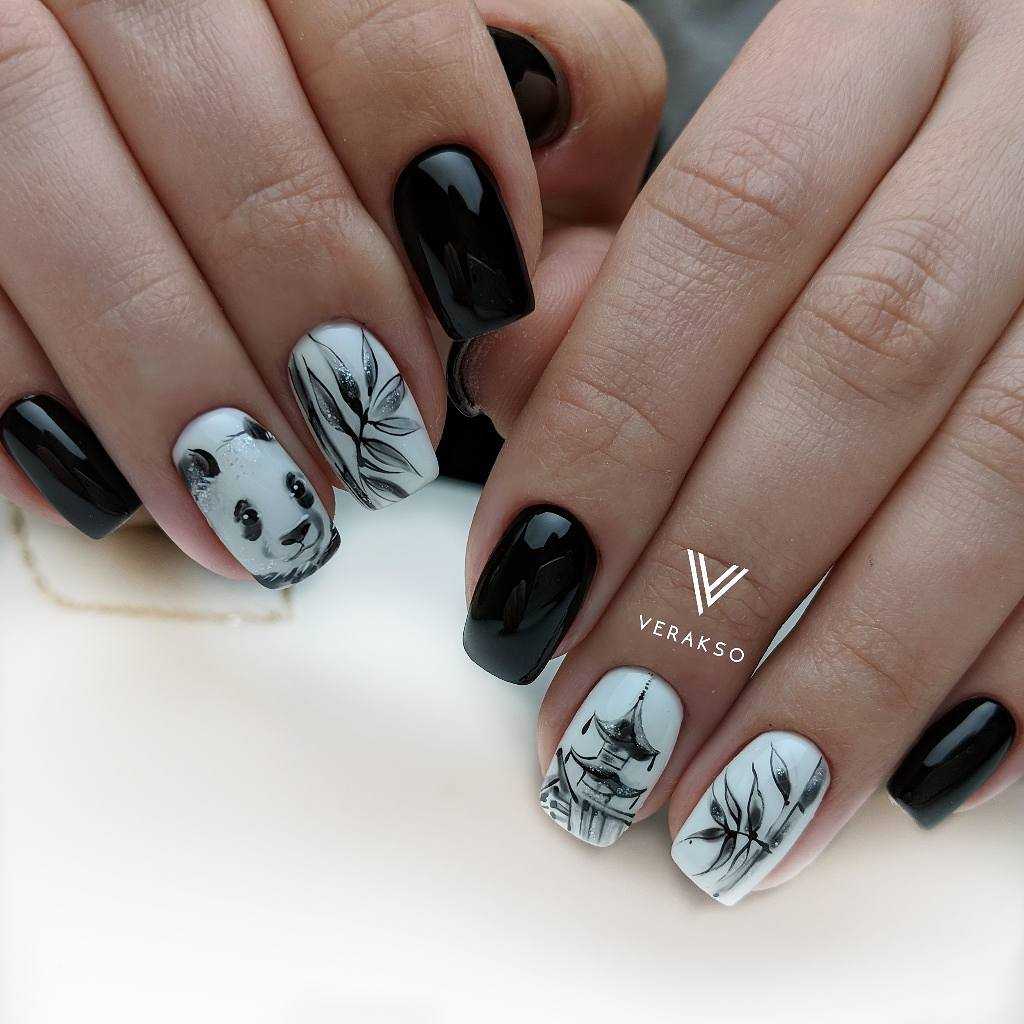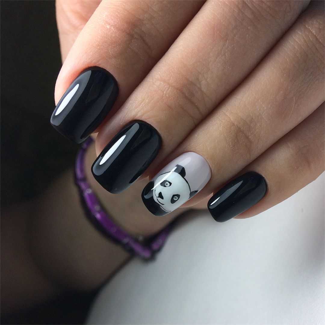 В тренде классические варианты маникюра с пандой, выполненные исключительно в черно-белых тонах. Такой дизайн смотрится естественно и легко, поэтому с успехом может присутствовать в повседневных образах.