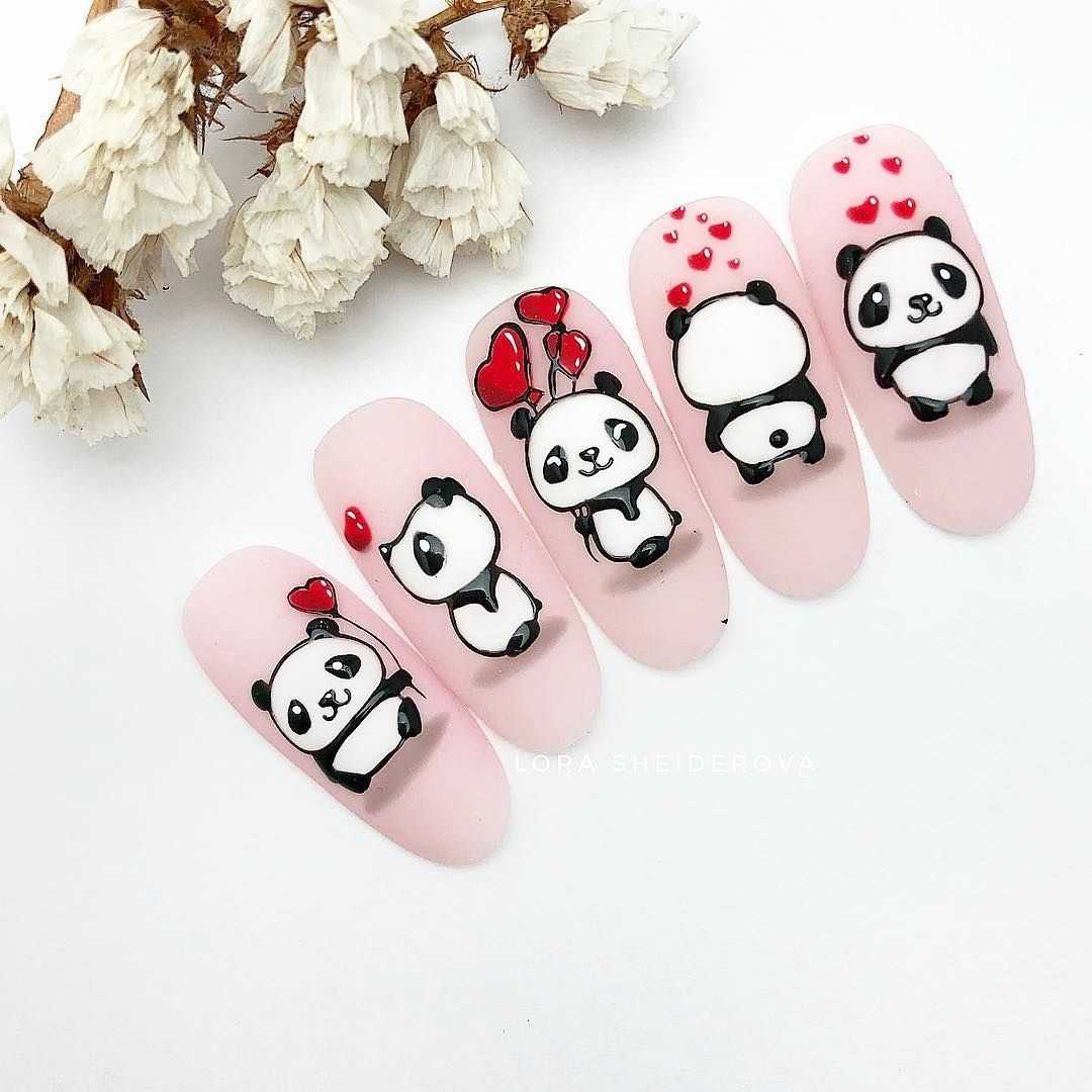Маникюр с пандой предоставляет барышням прекрасную возможность отдохнуть от строгости и замысловатого дизайна. Любая из вариаций маникюра дополнит образ нотками лёгкости и озорства, ведь глядя на эти забавные создания просто невозможно хмурить брови.