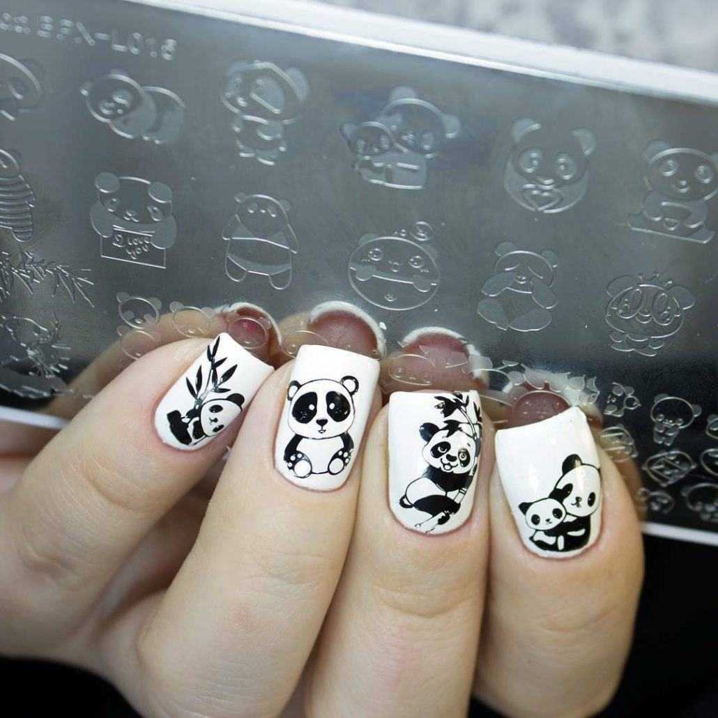 Современные техники поражают своими возможностями, и оформление рисунков в маникюре мастера салонов выполняют несколькими способами, среди которых художественная роспись, техника стемпинг и использование готовых наклеек. Первый пример считается самым сложным и уникальным одновременно. Рисунок выполняется тонкой кистью и требует наличия определённых навыков или художественного таланта. Изображения стемпингом представляют собой перенос на ноготок рисунка специальным штампом. Панда в этом случае может оставаться однотонной или дополнительно прорисовываться деталями. Наиболее лёгким способом нанесения рисунков считается использования готовых наклеек, что позволяет выполнить маникюр в домашних условиях. Вам или мастеру остаётся только аккуратно расправить на ноготке наклейку с выбранным изображением и закрепить прозрачным топом результат.