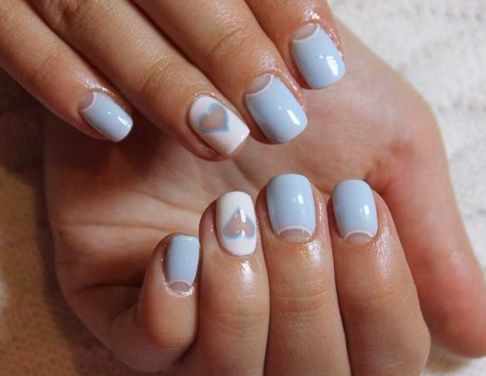 Французский и лунный маникюр с сердечками