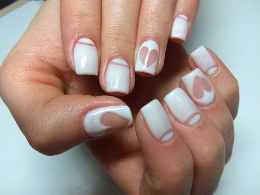 Белый маникюр с сердцами
