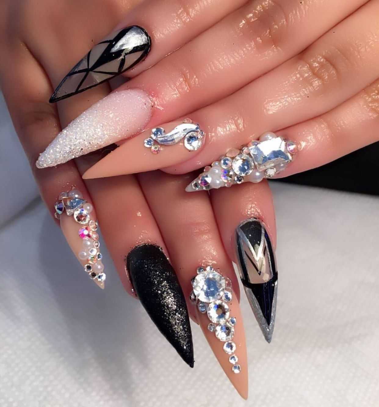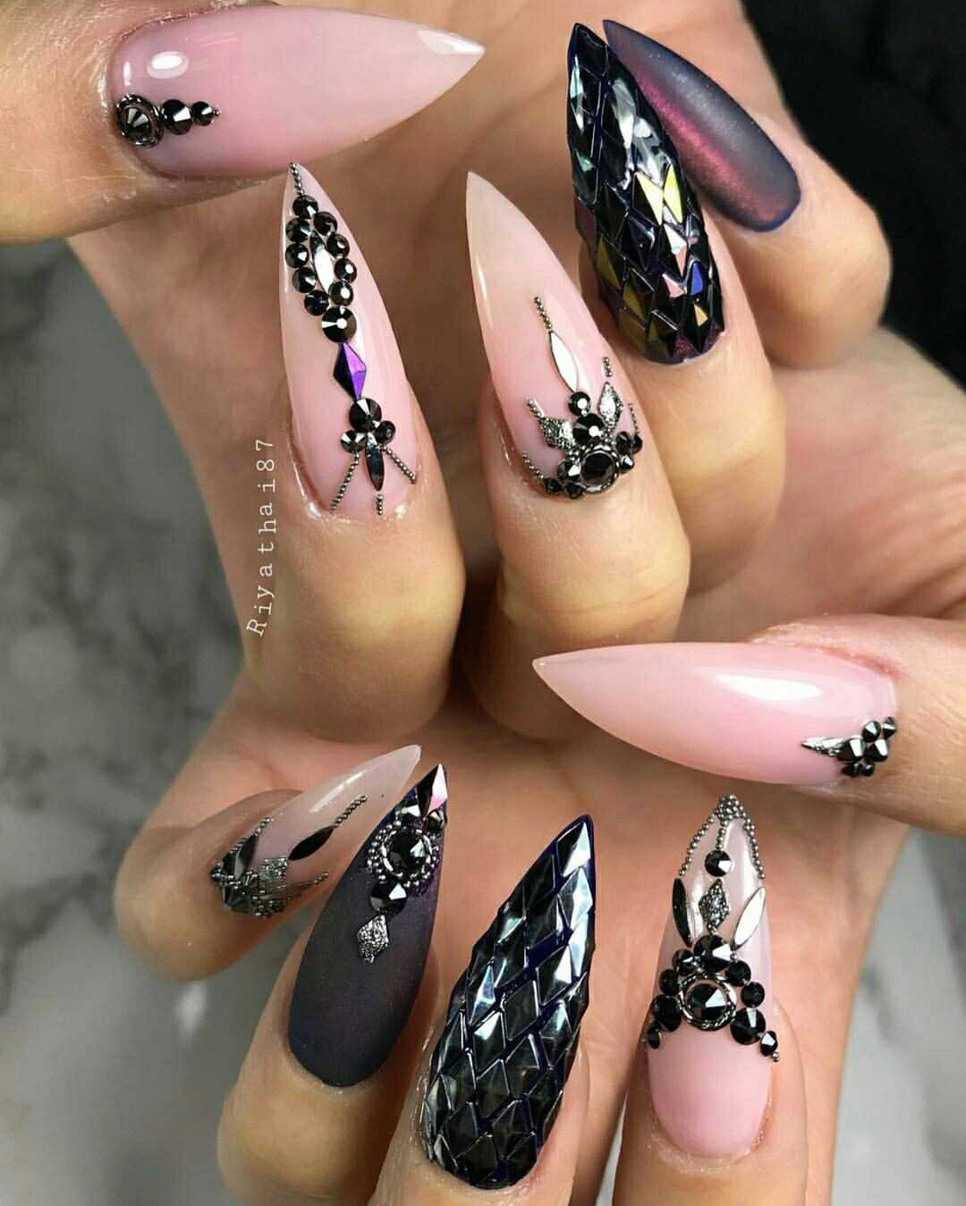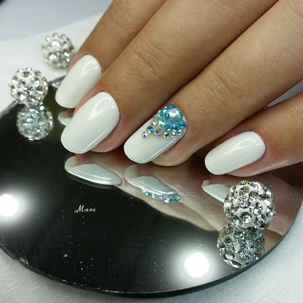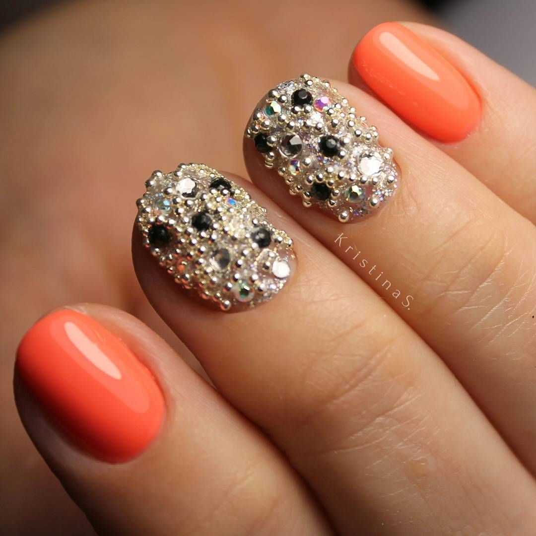 Один из простых, но при этом непревзойденных дизайнов нейл-арта. Покрыв полностью ноготки камнями пикси, необходимо сделать яркие акценты в виде нескольких небольших ярких камешков. Мастера маникюра советуют накрасить остальное ноготки светлым однотонным цветом, чтоб маникюр не выглядел излишне броским.