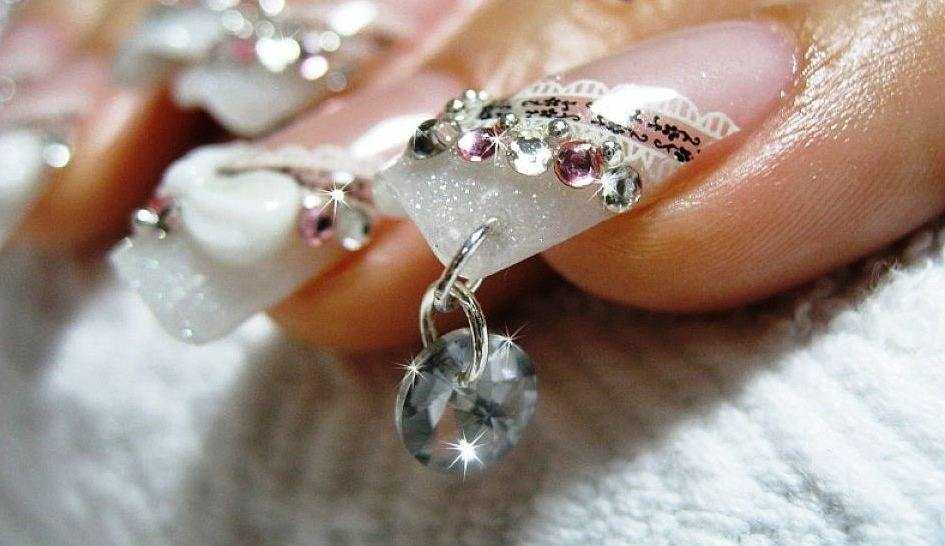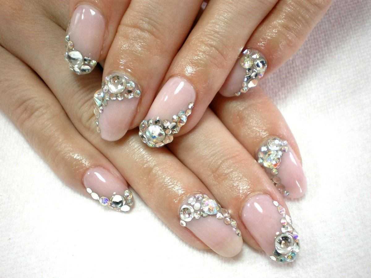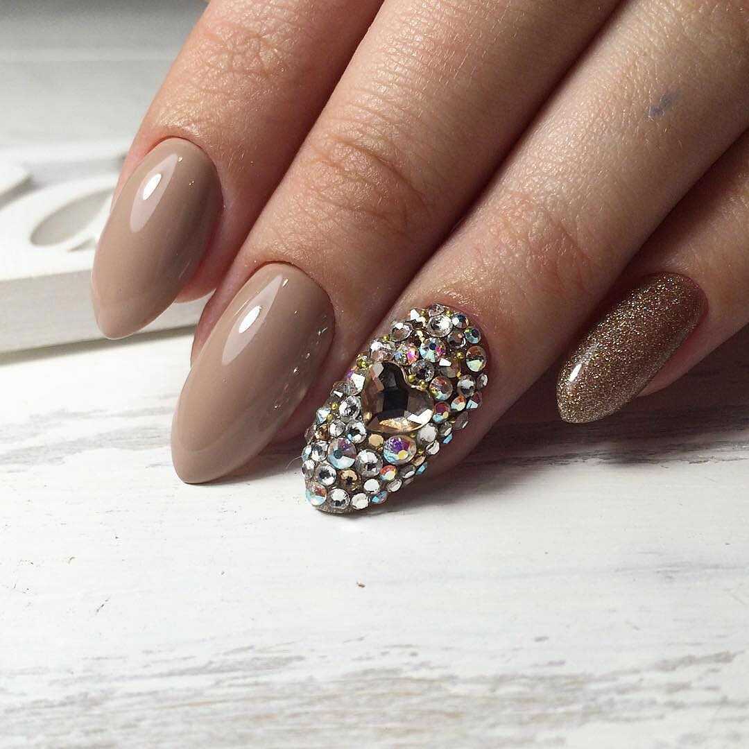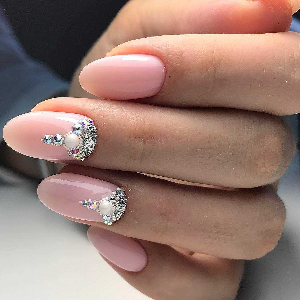Помимо блесток используйте новинку в нейл-дизайне – втирку, фольгу, технику «битое стекло». Стразы также можно отнести к блестящему декору, настолько красиво и нежно они переливаются на ноготках.