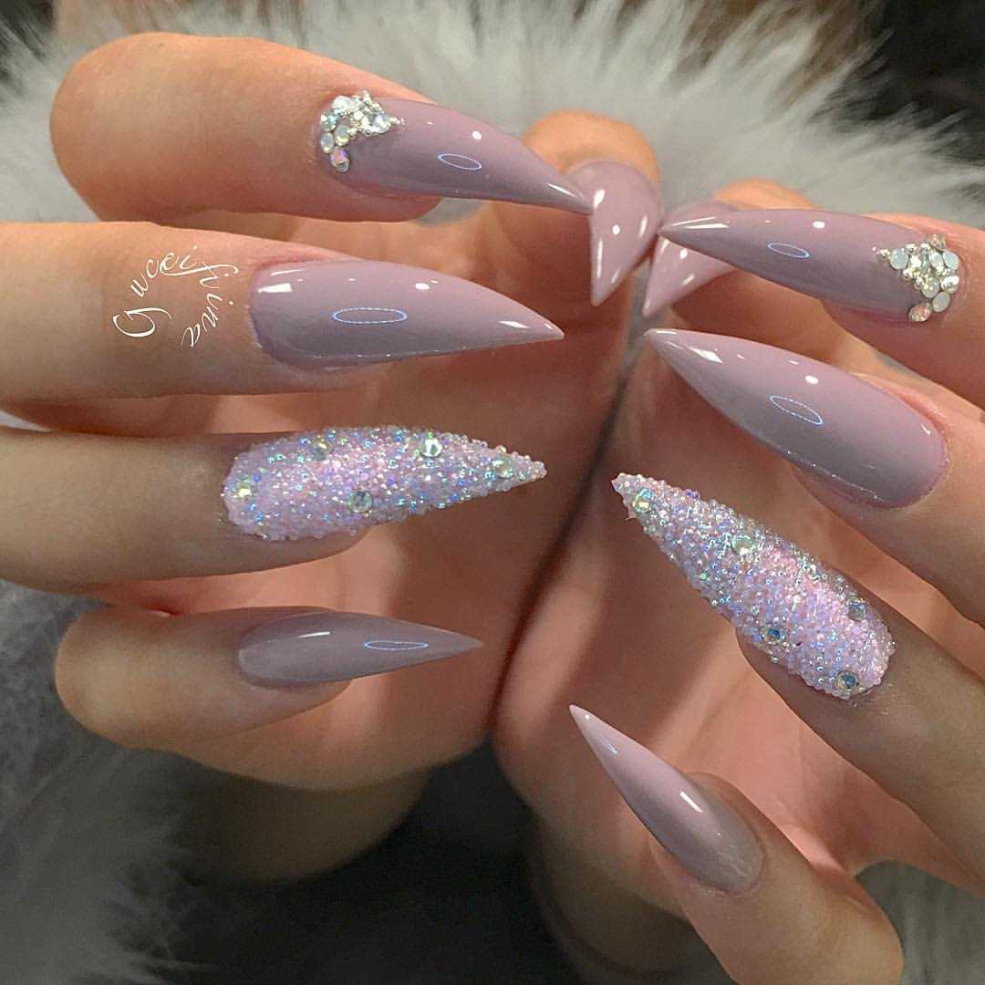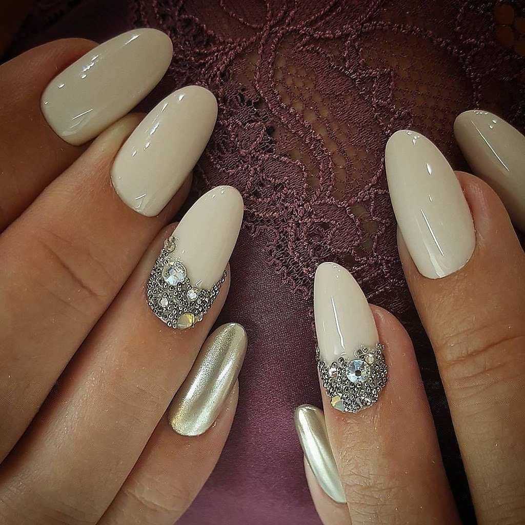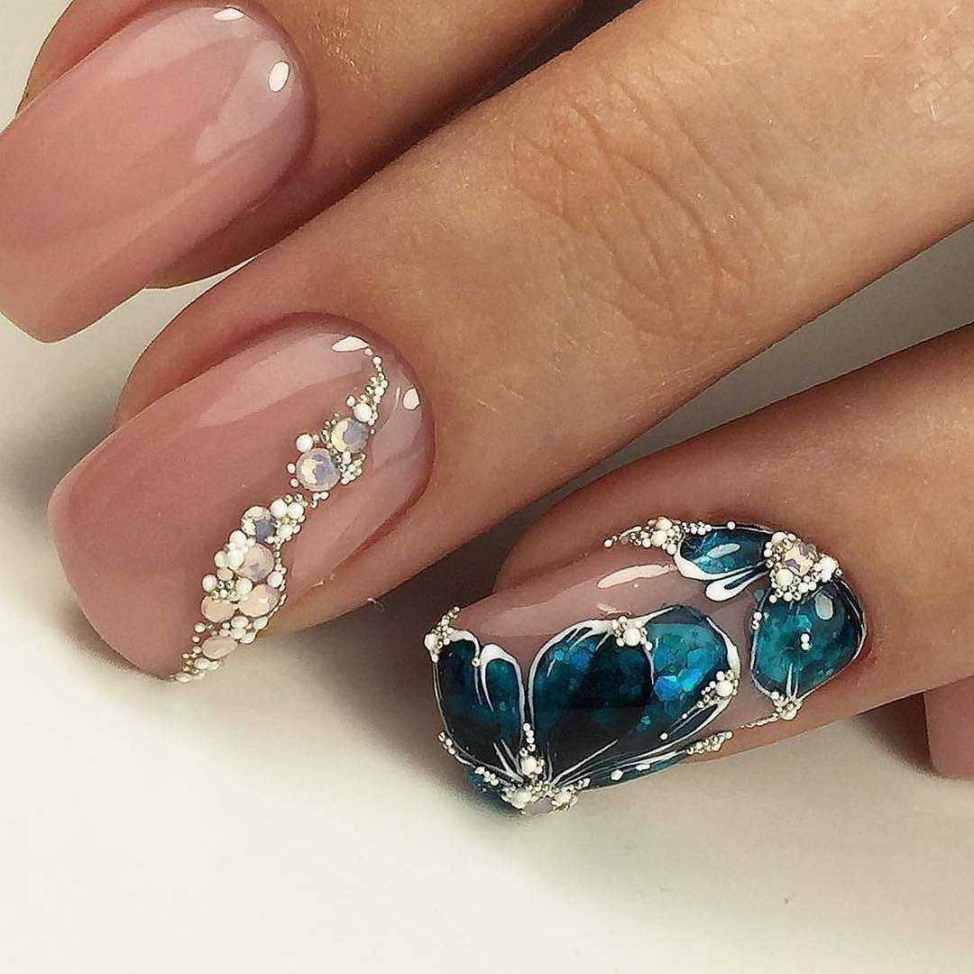 Помимо блесток используйте новинку в нейл-дизайне – втирку, фольгу, технику «битое стекло». Стразы также можно отнести к блестящему декору, настолько красиво и нежно они переливаются на ноготках.