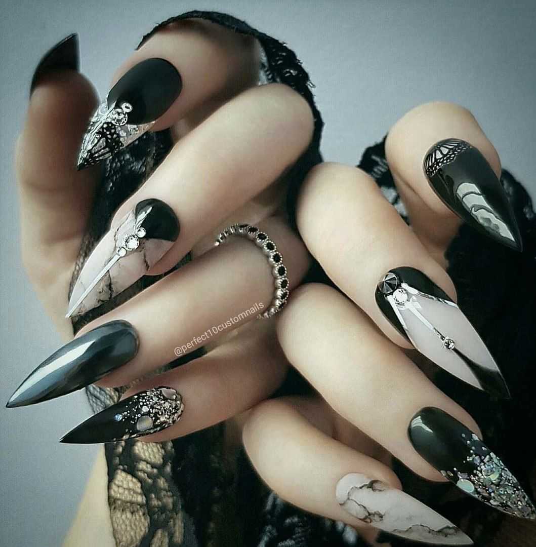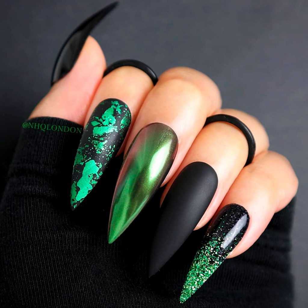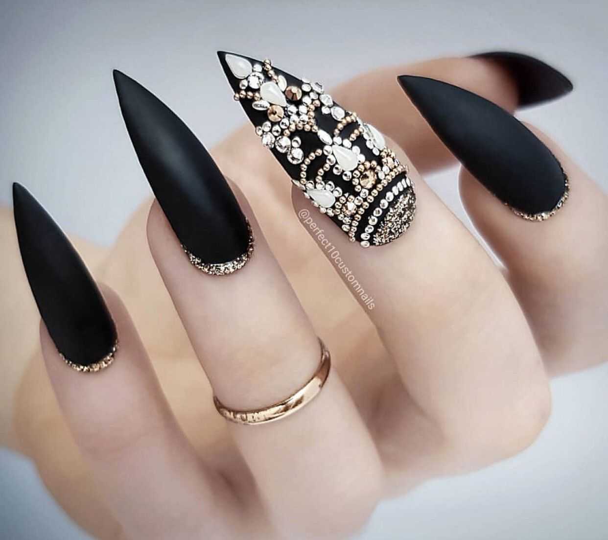 Чёрный лак на ногтях уже давно не ассоциируется с неформальными субкультурами, смотрится очень сдержанно и в модном сезоне 2021 считается признаком элегантности. Он прекрасно сочетается со многими известными техниками оформления и чудесно смотрится с украшениями и декором. Втирка в нашем случае, также не является исключением. Вы даже не представляете себе, насколько богато и шикарно выглядит такой тёмный маникюр с переливами пудры. Это может быть вариация однотонного нейла с блестящими переливами на каждом ноготке, комбинированный дизайн с блестящими и матовыми ногтями, маникюр с втиркой и рисунками или примеры нанесения пигмента в виде переходов градиента, когда на ногтевой пластине используется несколько цветов акриловой пудры. Не смотря на некую мрачность и бесконечную глубину, чёрный лак можно назвать идеальной базой для создания подобного дизайна.