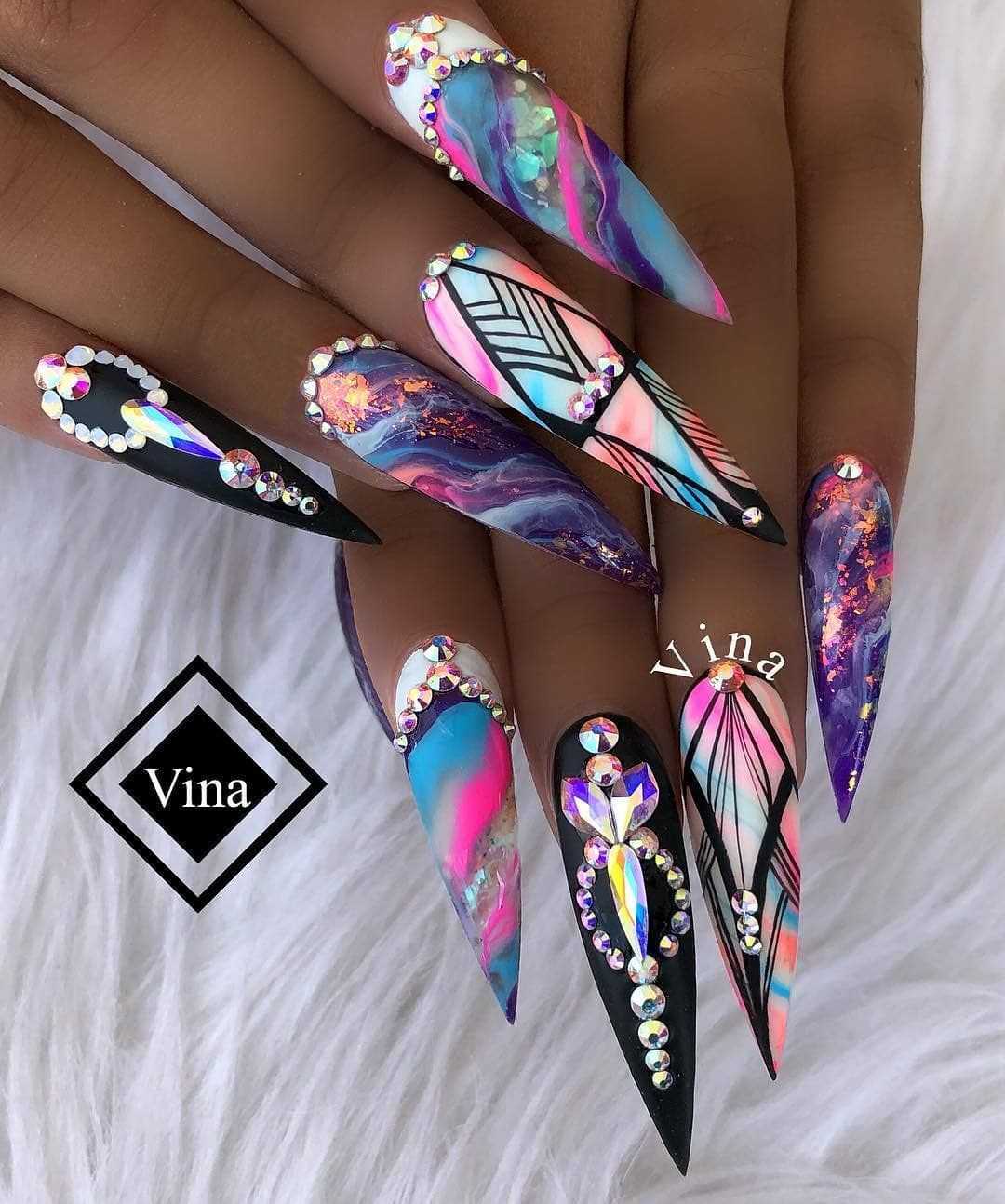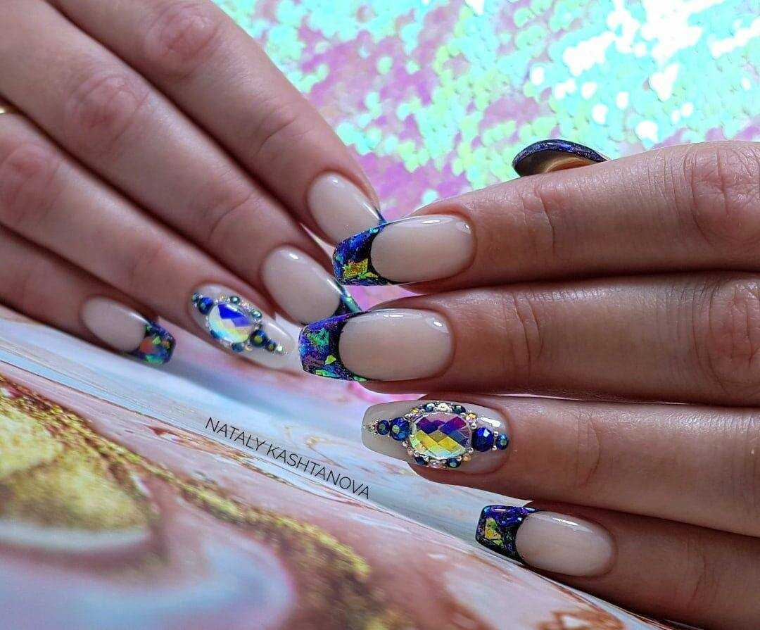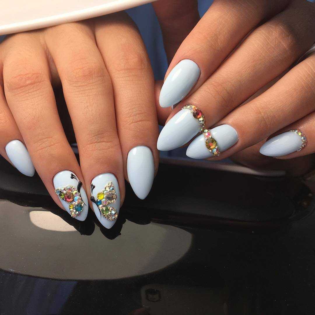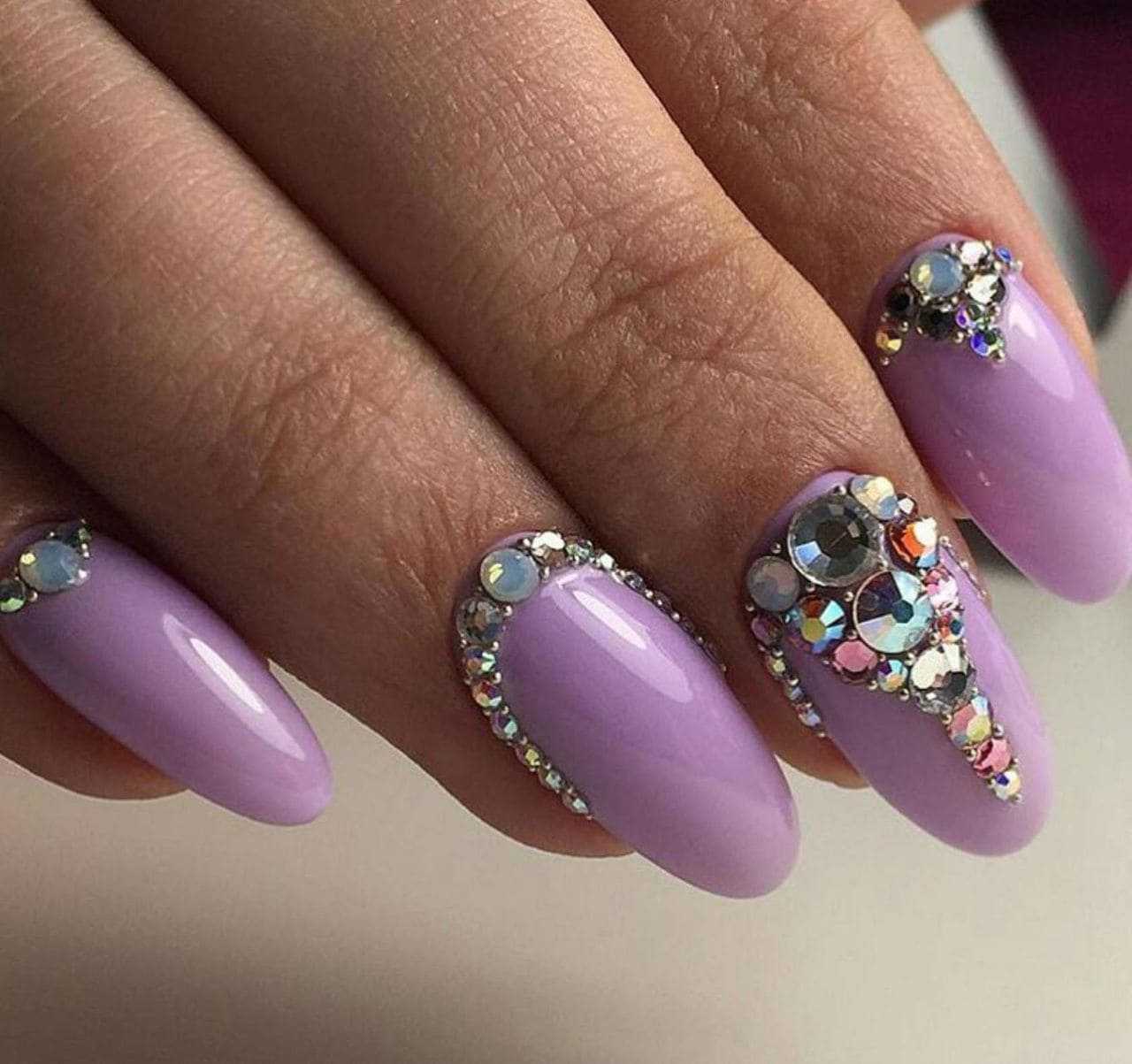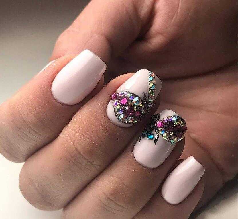 Одним из эффектных элементов декора являются камни. Украшение цветными камнями придает дизайну яркие нотки, а также привлекает множество внимания. Такой декор утонченно подойдет для различных нарядов и мероприятий. С наличием данного элемента декора не составит труда привлечь внимание к своему превосходному маникюру.