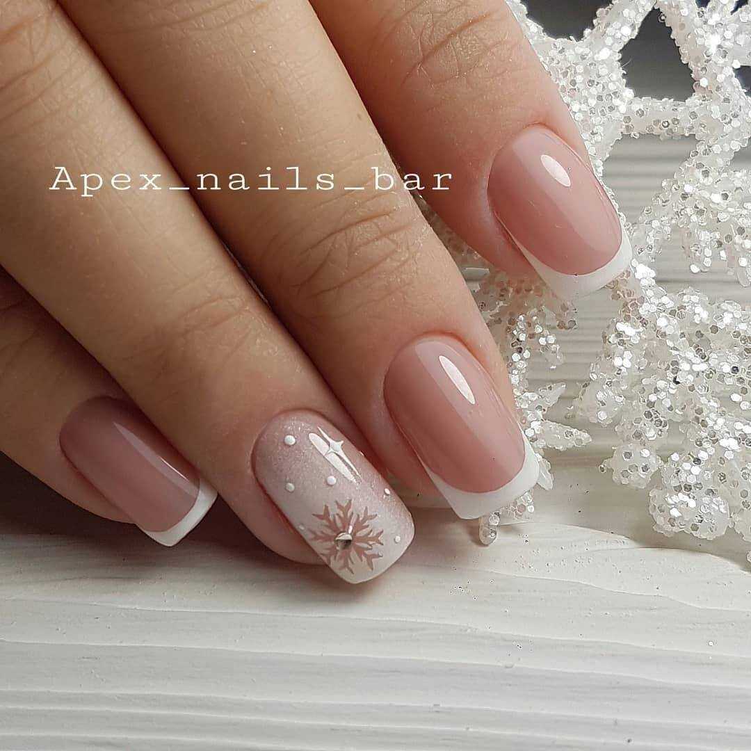 Стандартные белый, серый, бежевый, персиковый или бледно-розовый оттенки лака в этом случае смотрятся с блестящим пигментом просто потрясающе. Если подобной идеи вам кажется недостаточно и остаётся ощущение, что в маникюре чего-то не хватает, можно украсить маникюр рисунком или создать комбинированный дизайн, в котором френч сочетается с однотонными ногтями, покрытыми голографическими переливами или металлическим сиянием.