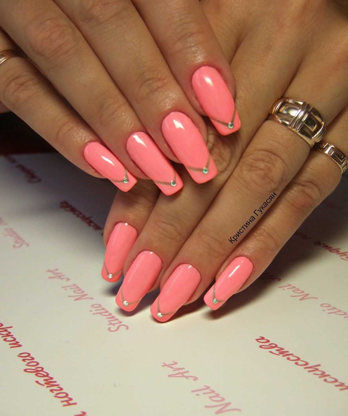 Поскольку именно розовый цвет всегда ассоциируется с нежностью и пользуется наибольшей популярностью среди модниц разной возрастной категории, мы решили поговорить об этом нейл-дизайне отдельно. Этот удивительный оттенок чудесно вписывается во многие образы и имеет большое количество полутонов, среди которых известные нам малиновый, ярко-розовый, лиловый, бледно-розовый, пыльно-розовый и прочие варианты. При этом каждый из них можно смело сочетать со стразами и другим декором.