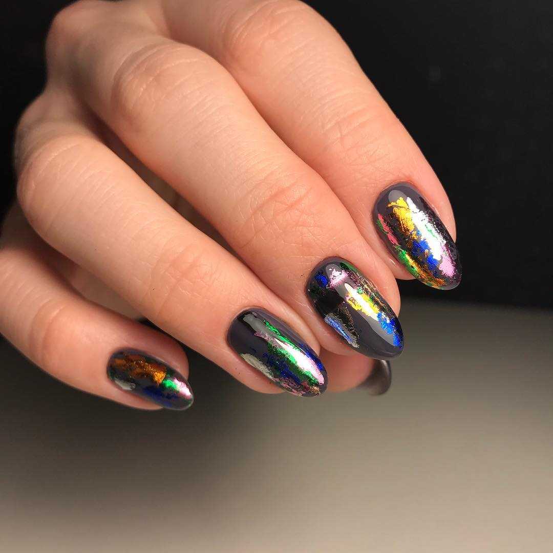 Фольга и другие разновидности блестящего декора – это самые трендовые покрытия. В этом году они стремительно набирают еще большую популярность. Такой декор очень удобен для маникюра, ведь его можно нанести самостоятельно в домашних условиях при помощи обычной фольги. Нужно всего лишь нарезать фольгу и выполнить эффект битого стекла на своих ноготках. И все. Модный и необычный маникюр готов. Если нет времени на работу с фольгой, то ее альтернативным вариантом станут камифубуки, которые за несколько минут помогут преобразить однотонный маникюр удивительными и яркими переливами.