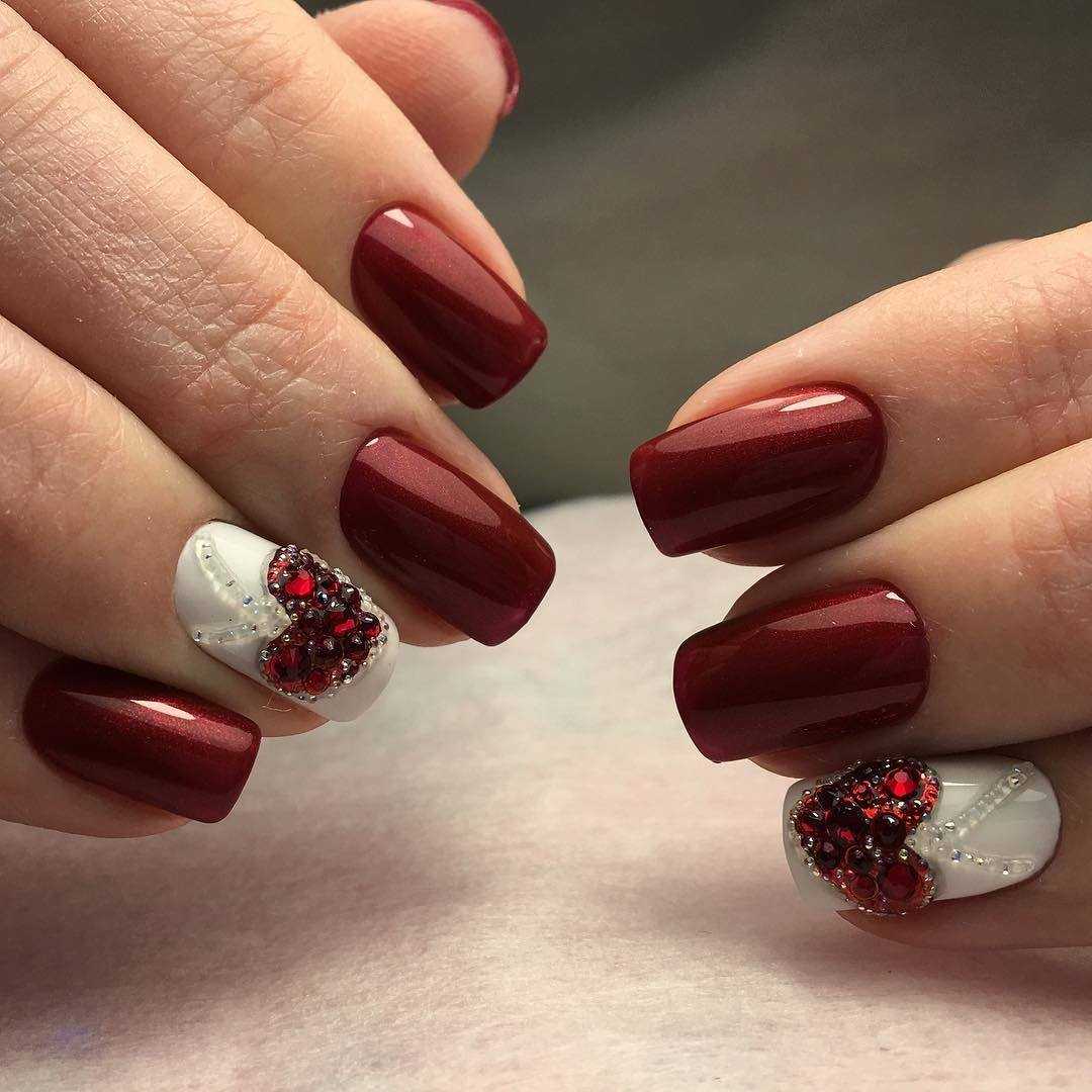 Используйте для маникюра бордовый, вишневый, гранатовый цвет, то есть глубокие, не кричащие оттенки. Если вы все же предпочитаете алые тона, то используйте для создания дизайна матовые гель-лаки. Они сгладят чересчур броский дизайн, сделают маникюр более повседневным.
