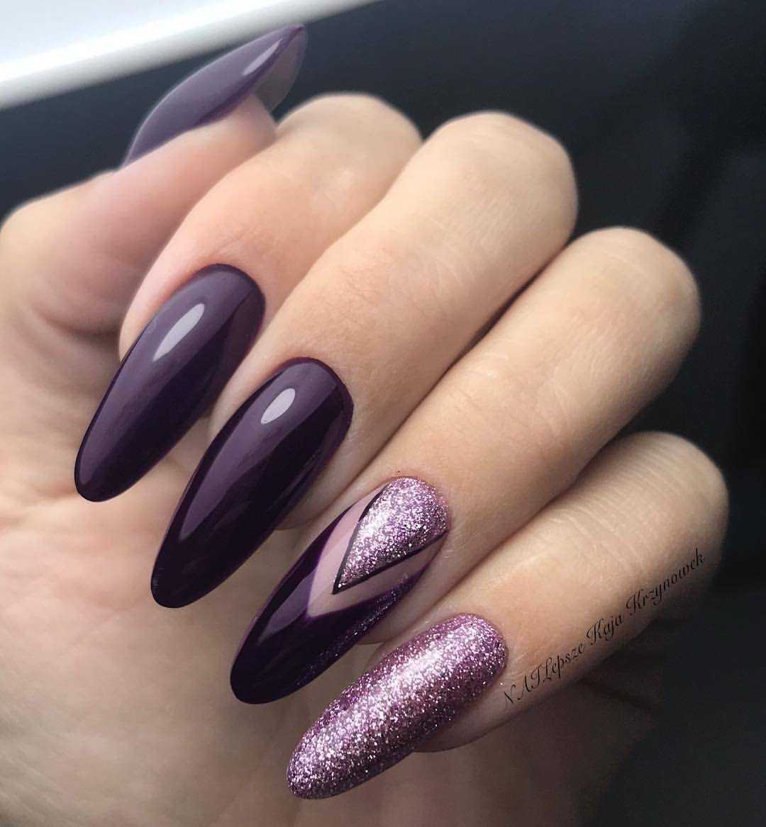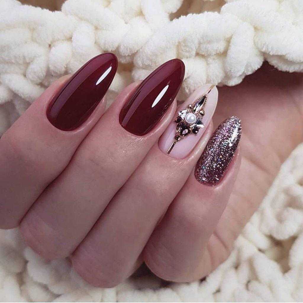 Пайетки представляют собой материал самого разного размера и формы. Маникюр с пайетками визуально смотрится как переливы огней, брызги шампанского, фейерверк. Пайетки отлично смотрятся как в повседневных нейл-артах на пастельном фоне, так и вечернем маникюре в бордовом, черном, темно-синем цвете.