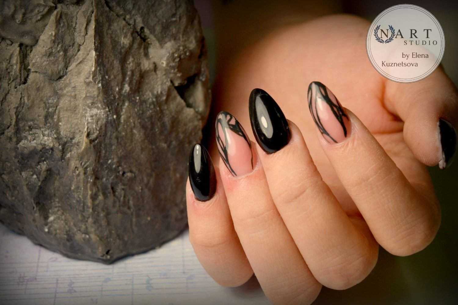 Маникюр черная вуаль