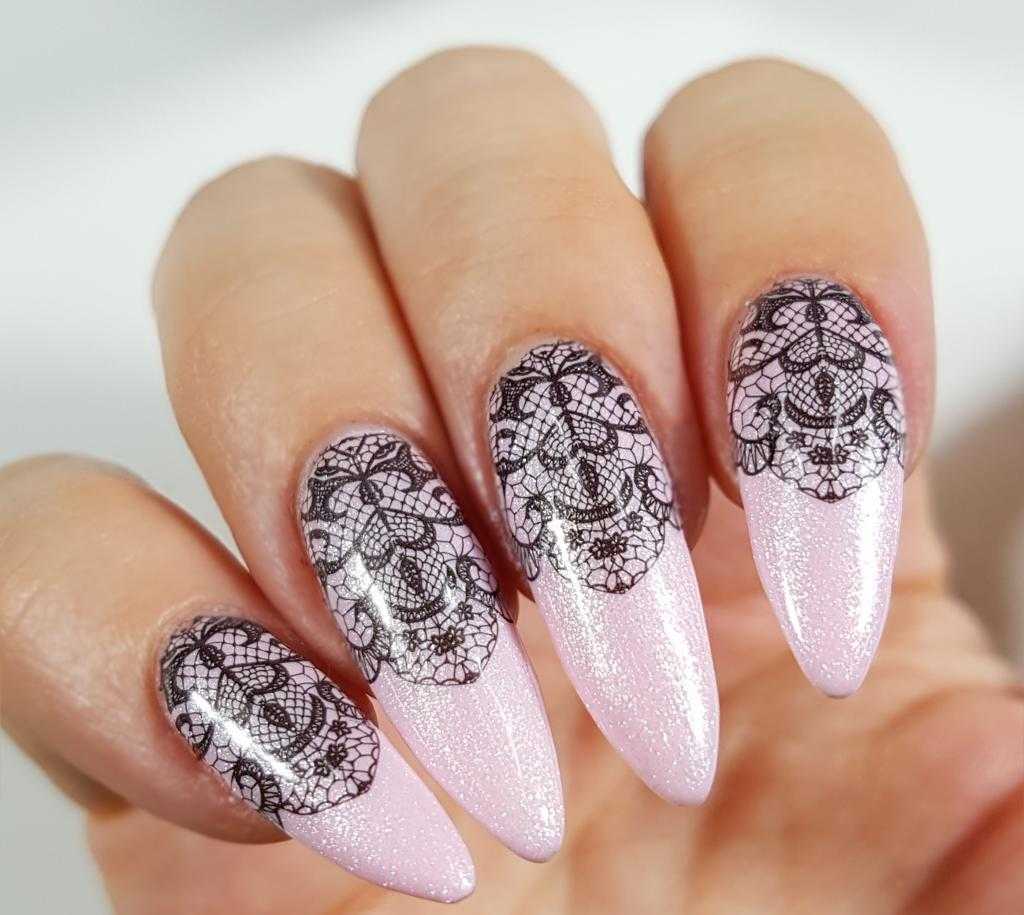 Кто-то называет это кружевом, кто-то полупрозрачным черным покрытием. Второе название маникюра – «колготки», потому что он напоминает знаменитые узоры женского предмета одежды. В любом случае, принт изящно смотрится, как на колготках, так и на ногтях. За несколько месяцев он успел покорить сердца многих модниц.