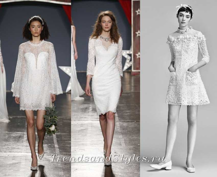 Для любительниц коротких фасонов или церемонии в кругу семьи есть замечательные свадебные платья короткой длины, в которых сочетается модный декор из перьев, бантов, актуальные фактуры и оттенки года.