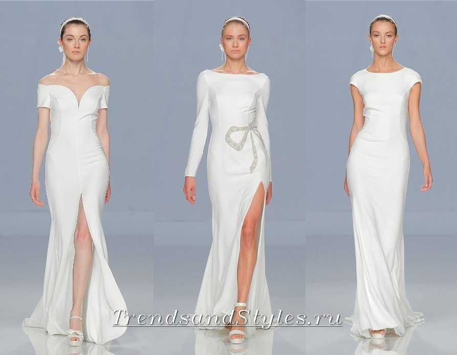 Лидирующие позиции сохраняют за собой прилегающие и бальные фасоны. Остаются востребованными у дизайнеров варианты «русалка» и А-силуэт. Модели ампир и свадебные платья в греческом стиле были представлены не так широко. Но, благодаря своей универсальности, способности корректировать недостатки фигуры вряд ли покинут модный Олимп.