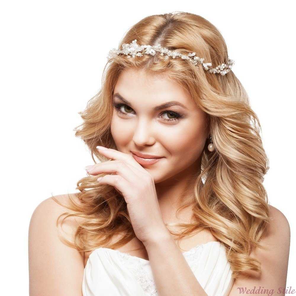 Актуальны не только классические диадемы, но и ободки из цветов и камней, переливающиеся нити, греческие венки и т.п. Варианты с разными типами украшений приведены ниже: