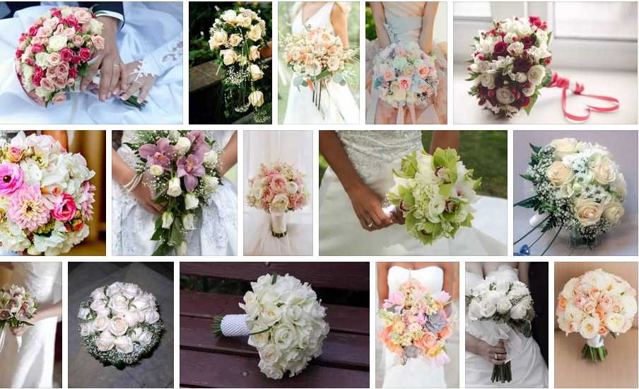 Поклонницам изысканной роскоши подойдет букет, в котором гармонично сочетаются различные цветы и растения. Их выбор может модно обуславливать сезонностью. На летней свадьбе органично будут смотреться композиции в розовых, синих и желтых оттенках. За основу можно взять даже простые полевые цветы. Естественное сочетание ромашек, васильков, клевера, лаванды и сочного зеленого разнотравья освежит ансамбль и сделает его легким и романтичным.