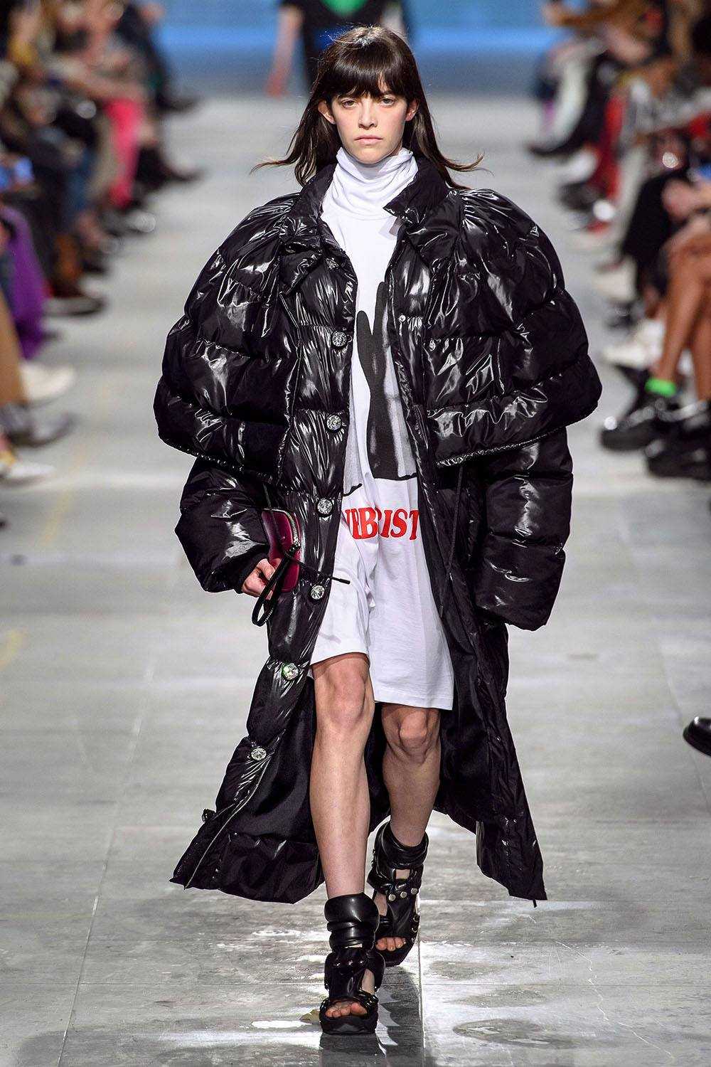 Нельзя не сказать и о чёрной подводке. В 2018 году самым востребованным средством женской косметики будет подводка для глаз. Можете больше не ограничивать себя в классических маленьких стрелочках. Теперь же модными будут все формы стрелок, даже просто хаотичные линии. Характерный образ для предыдущей эпохи — четкая ядерно-черная линия вдоль века. Такой же образ повторили и современные визажисты, он был применен на показе «Chloe». Они также вспомнили известный макияж дивы Кейт Мосс: черные очерченные карандашом глаза с мини-стрелочкой. Данный makeup будет прекрасно дополнять образ девушек с холодно- голубыми глазами, а также с теплыми карими оттенками глаз. В шоу «Versace» была рассекречена тематика гранжа благодаря широким большим и графичным стрелкам. Подиумный наставник Том Пешо на «Saint Laurent» решил оставить моделей с практически голым лицом — исключением являлись чёрные мазки на их веках, они были сделаны с помощью туши и пальцев.