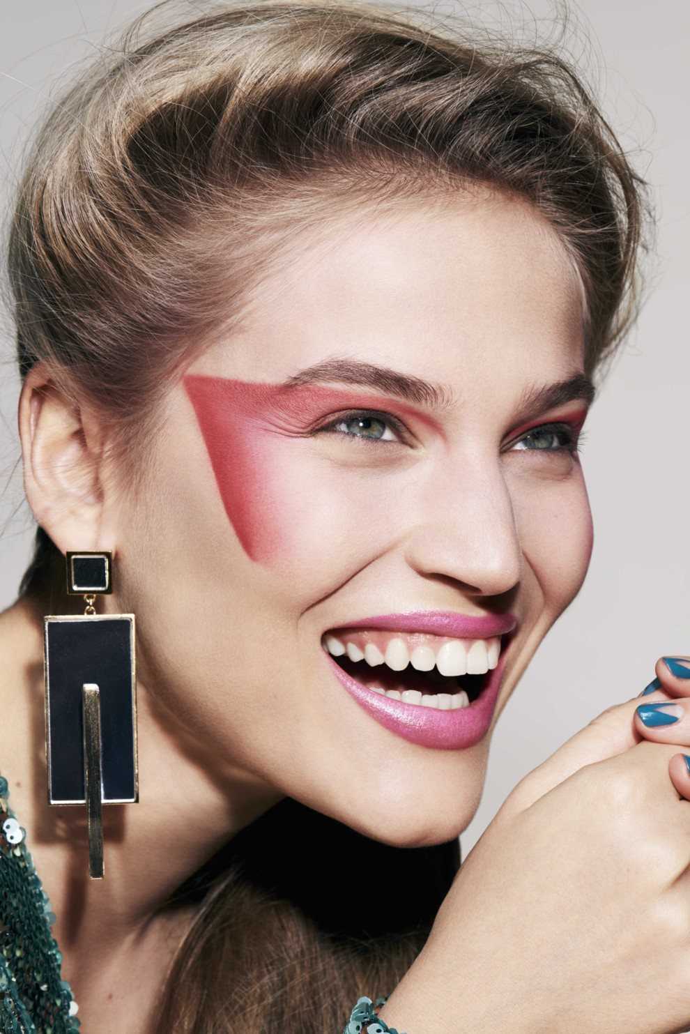 - А если вам всё-таки захочется ярких экспериментов, обратитесь к стразам, наклейкам, рисункам и крупному глиттеру: проявите свою фантазию и в буквальном смысле рисуйте на своём лице, создавая линии и паттерны.