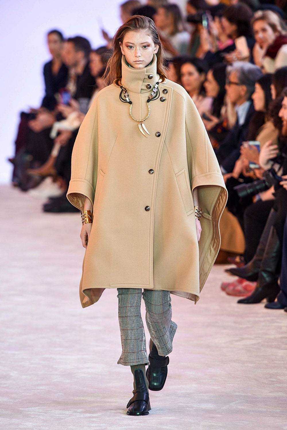 Особой популярностью в осеннем сезоне пользуются кейпы. Это своеобразные накидки с прорезями для рук. Они могут быть стандартными или удлиненными. В целом это не имеет особого значения. Также нередко их украшают крупными пуговицами, декоративной строчкой, а также необычным воротником или карманами.