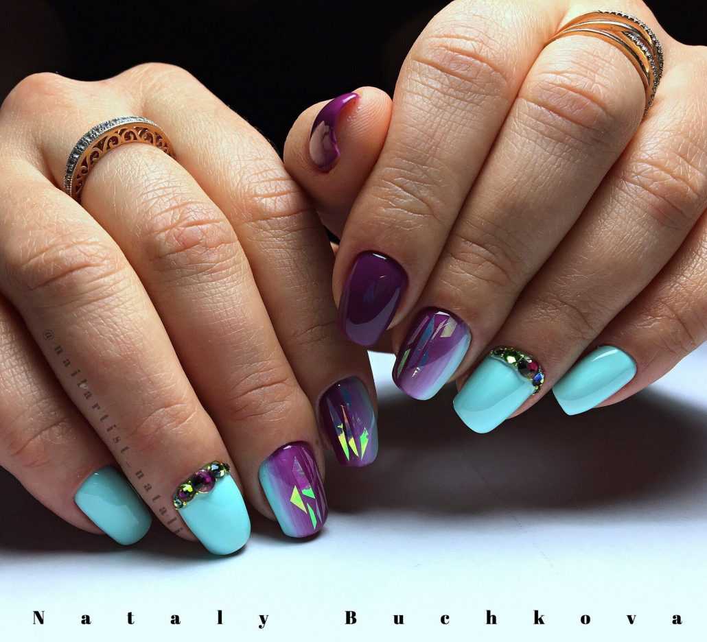 Разноплановость дизайна – главная отличительная особенность оформления ногтей в этом сезоне. Не потеряли свою актуальность стразы, классический френч, полупрозрачный нюд. Цветочные мотивы, яркие бирюзовые оттенки, синие тона также занимают лидирующие позиции в модных тенденциях.