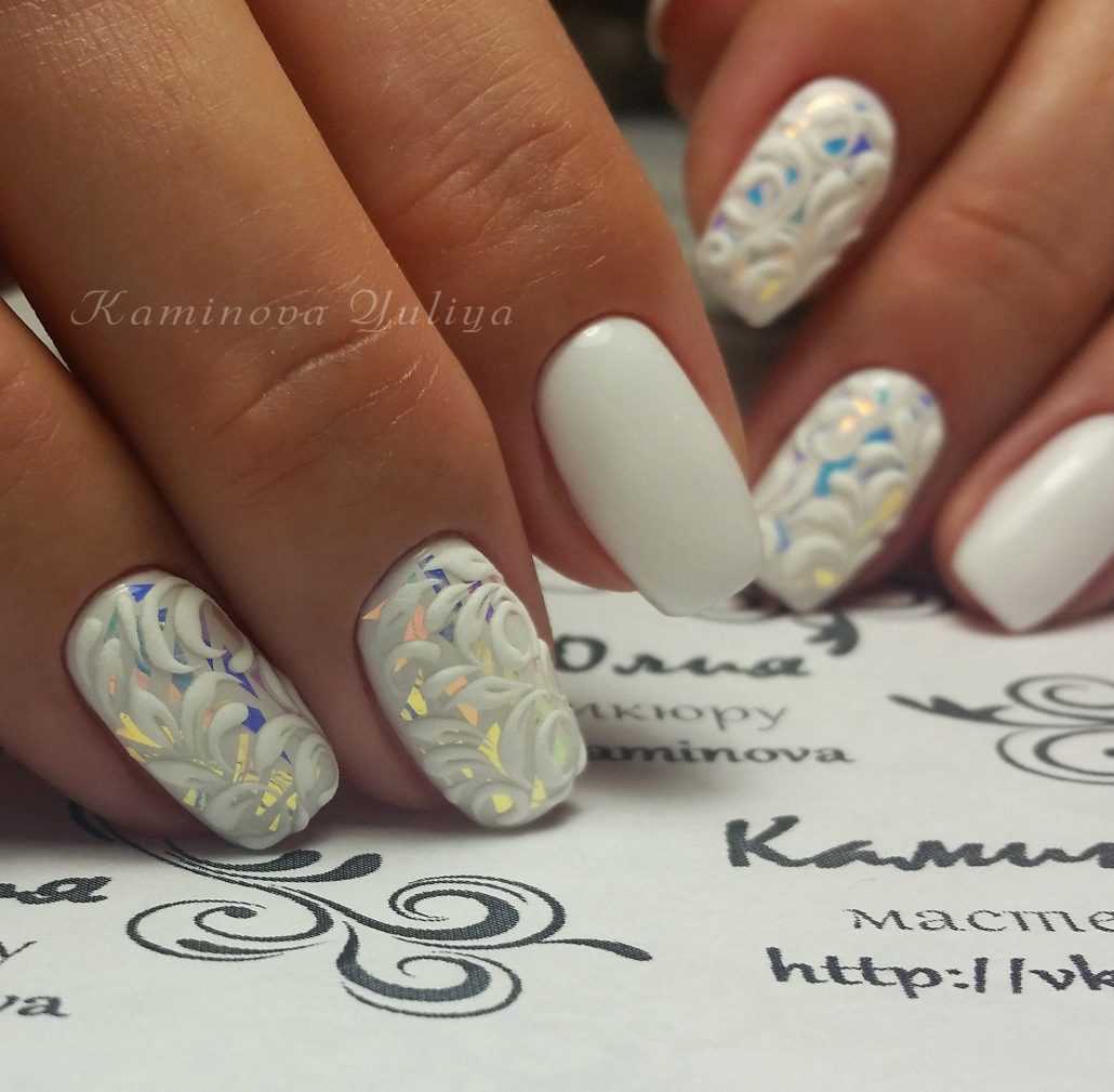 блестящий белый с камифубиками на длинный миндаль