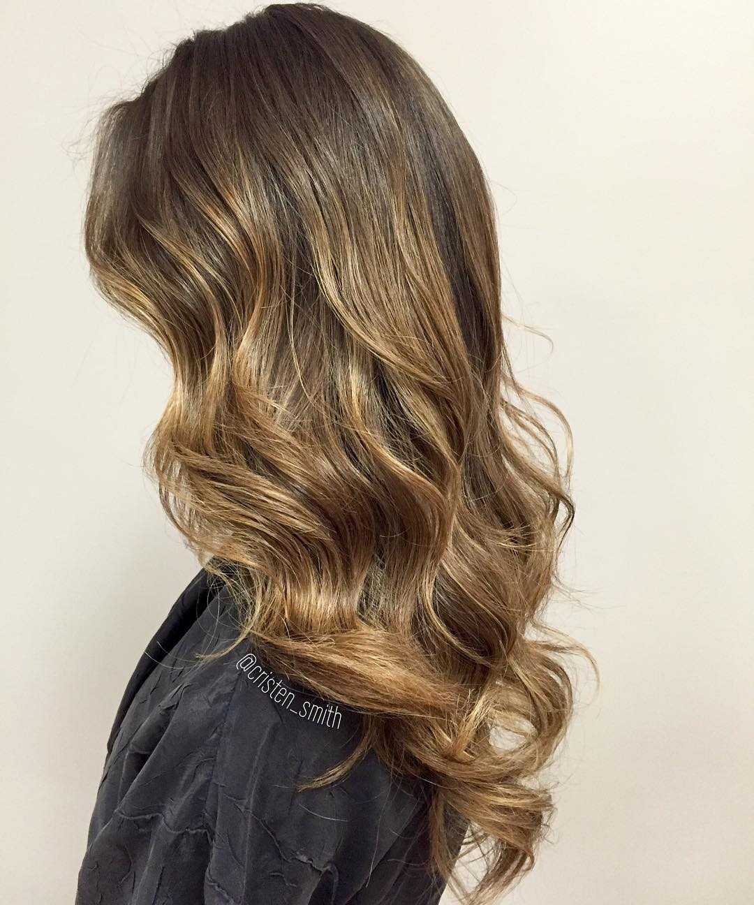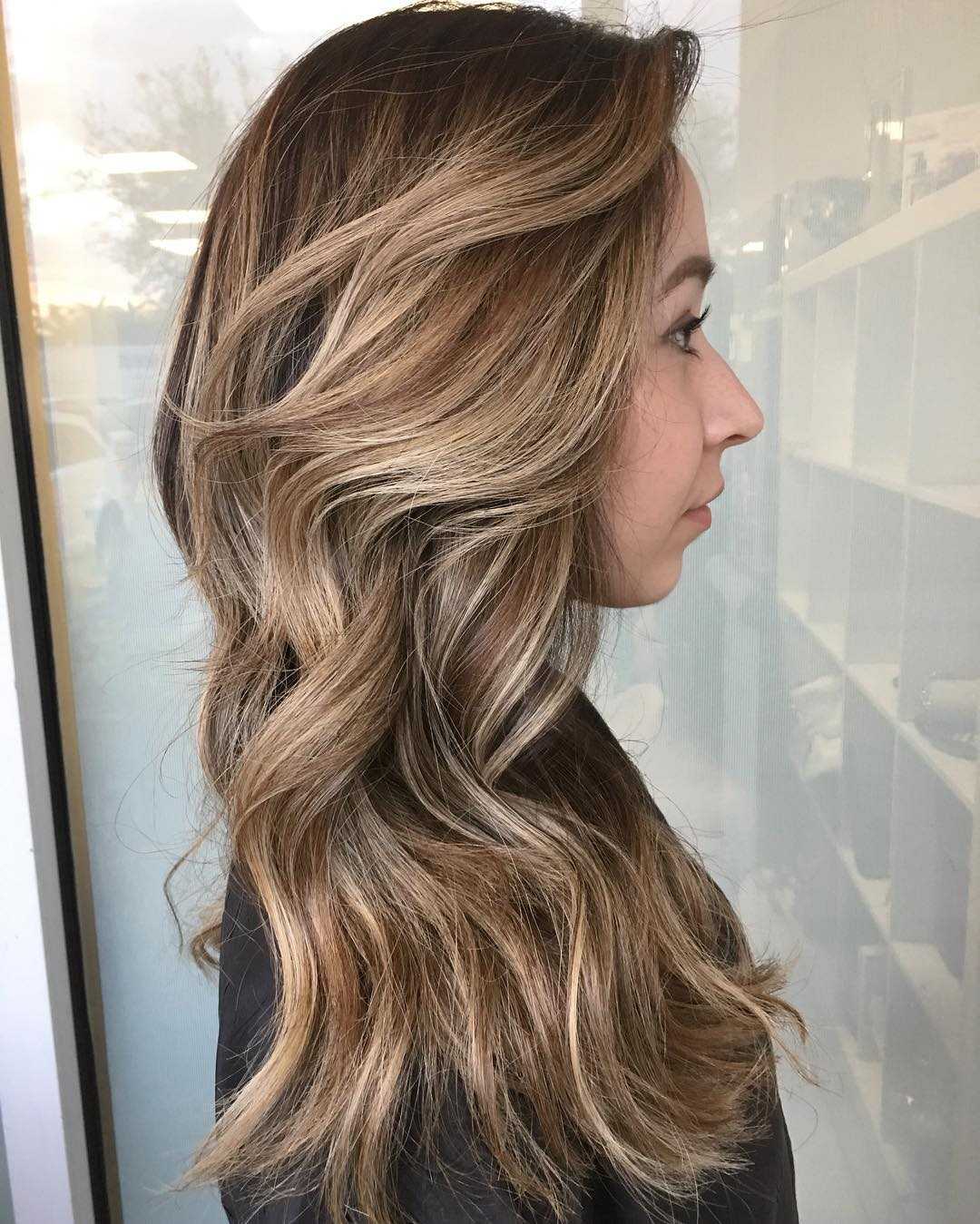 Балаяж похож на мелирование, также осветляются отдельные пряди. Осветляющий состав наносится свободно и даже небрежно и растягивается по всей длине отдельной пряди.