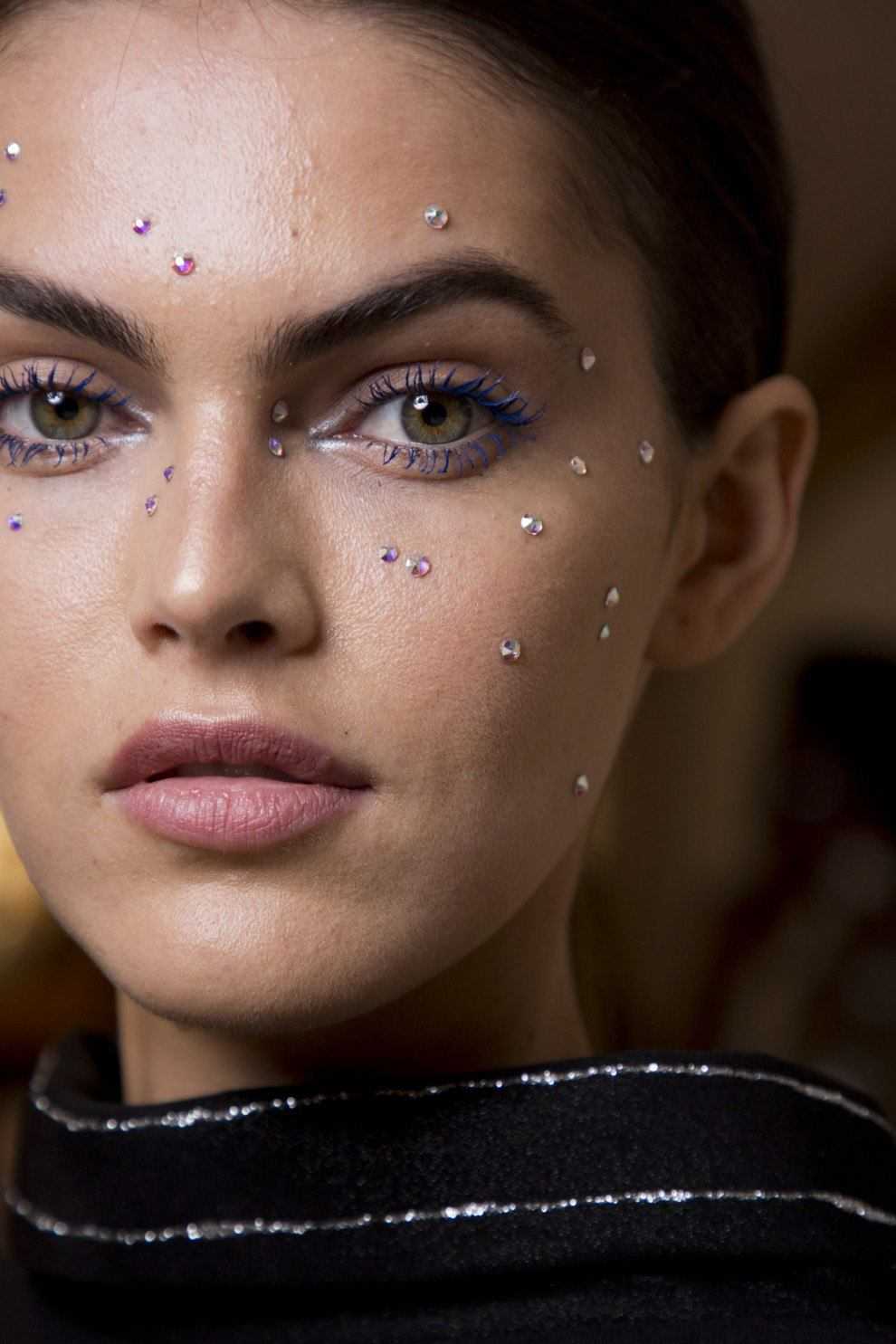 Еще один тренд сезона — это всем давно знакомый и любимый глиттер. При этом область нанесения сияющих частиц совершенно не важна, это и губы и веки и т.д.