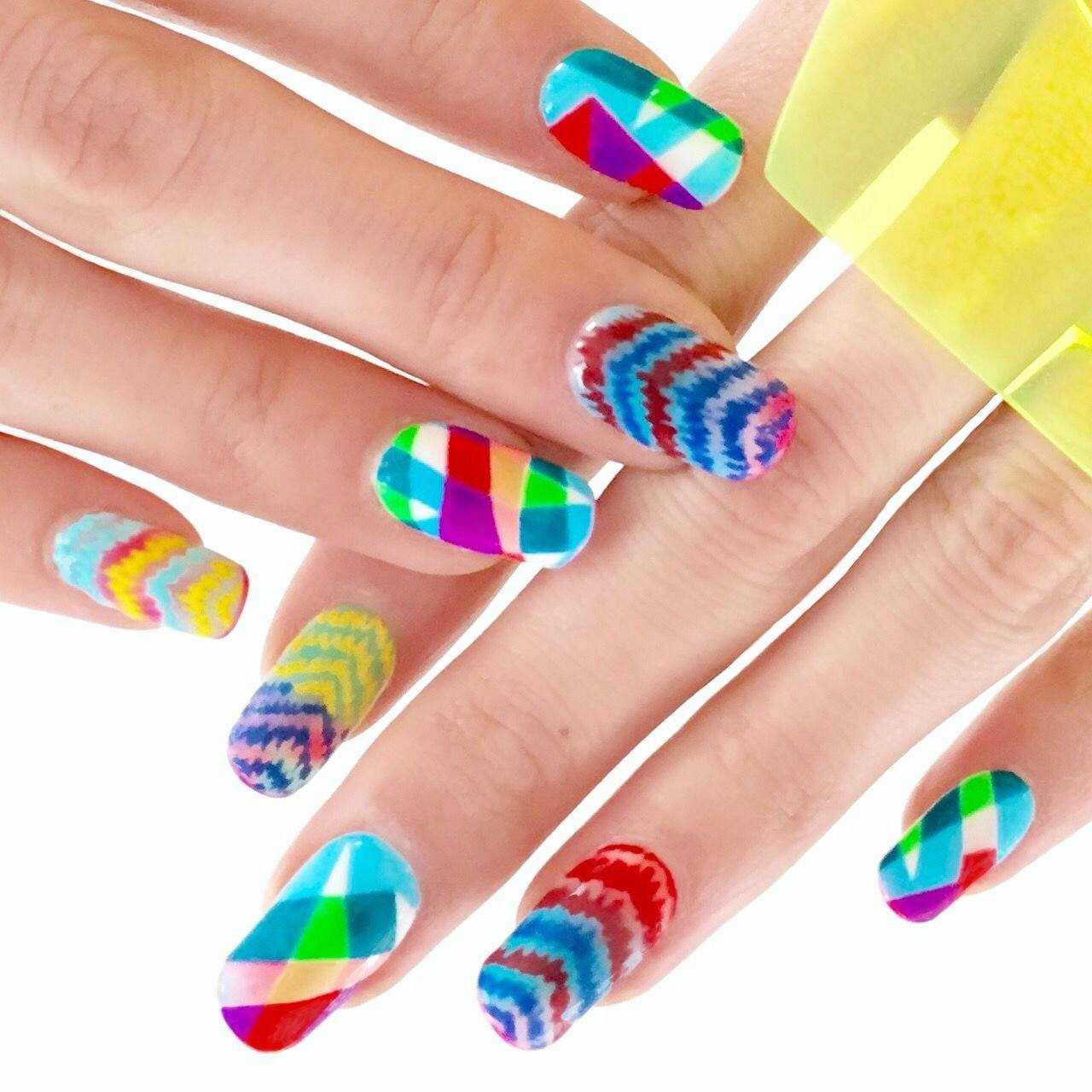 Такая идея подразумевает покрытие ногтей несколькими оттенками лака одновременно. Начинающая модница может выбрать два-три лака или отдать предпочтение всем цветам радуги. Наносим по очереди выбранные покрытия на пальцы и покоряем всех мальчишек. Оттенки могут чередоваться между собой или интересно дублироваться. Например, ногтевые пластины на больших пальцах обеих рук красим розовым, указательные – голубым, средние пальцы покрываем фиалковым, для безымянных выбираем нежный мятный оттенок, а ногти на мизинцах сделаем лимонными. Не менее красиво смотрится в подобном варианте дизайн «разные ручки», когда для маникюра на правой и левой руке используется разные цвета покрытий.