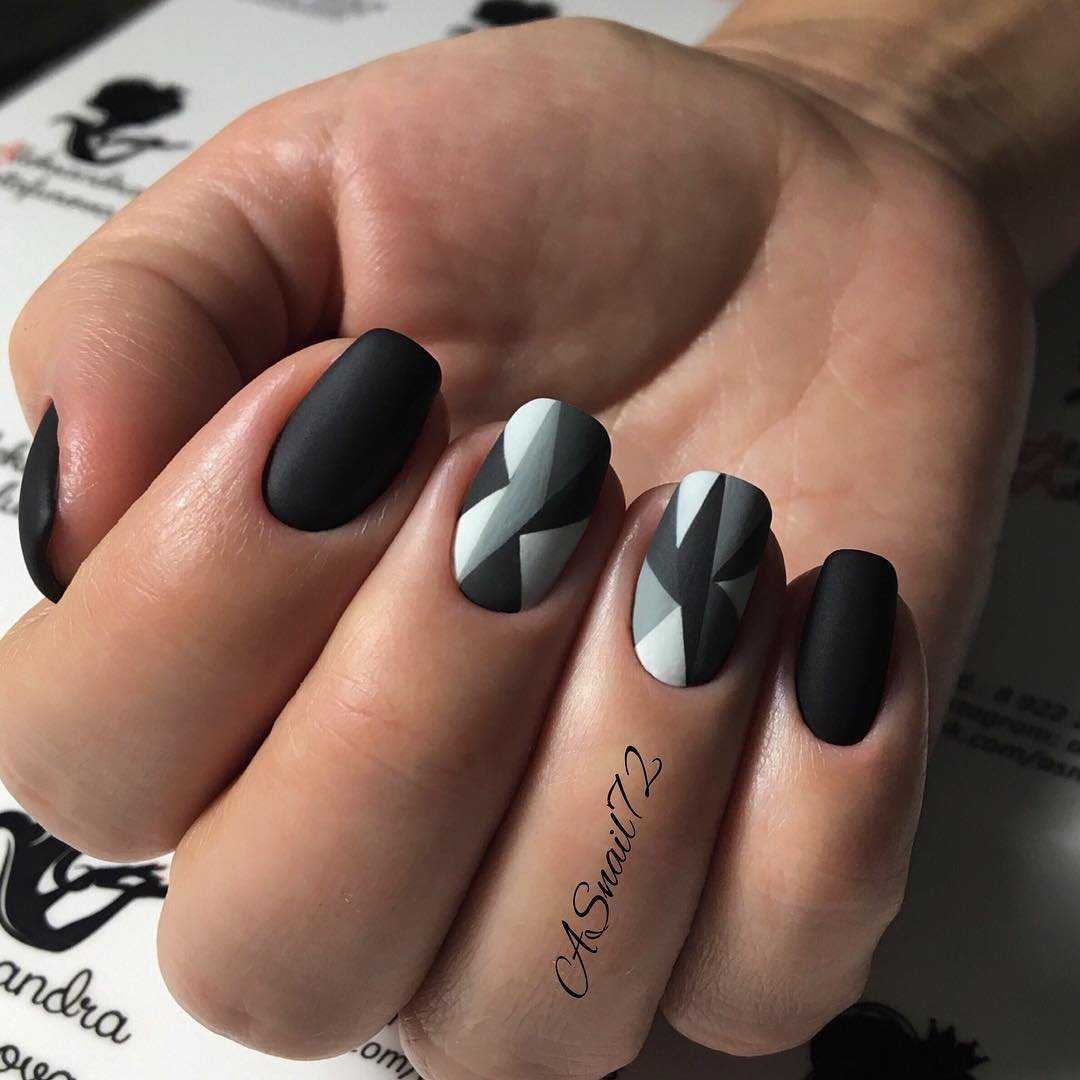 Черный дизайн великолепно смотрится на коротких ногтях миндалевидной и квадратной формы. Что касается фактуры, то неоспоримым лидером сезона считается глянцевый лак. Черный цвет весьма капризно относится к сочетаниям, поэтому единственным дополнением темного дизайна могут стать золотые блестки и другой «металлический» декор.