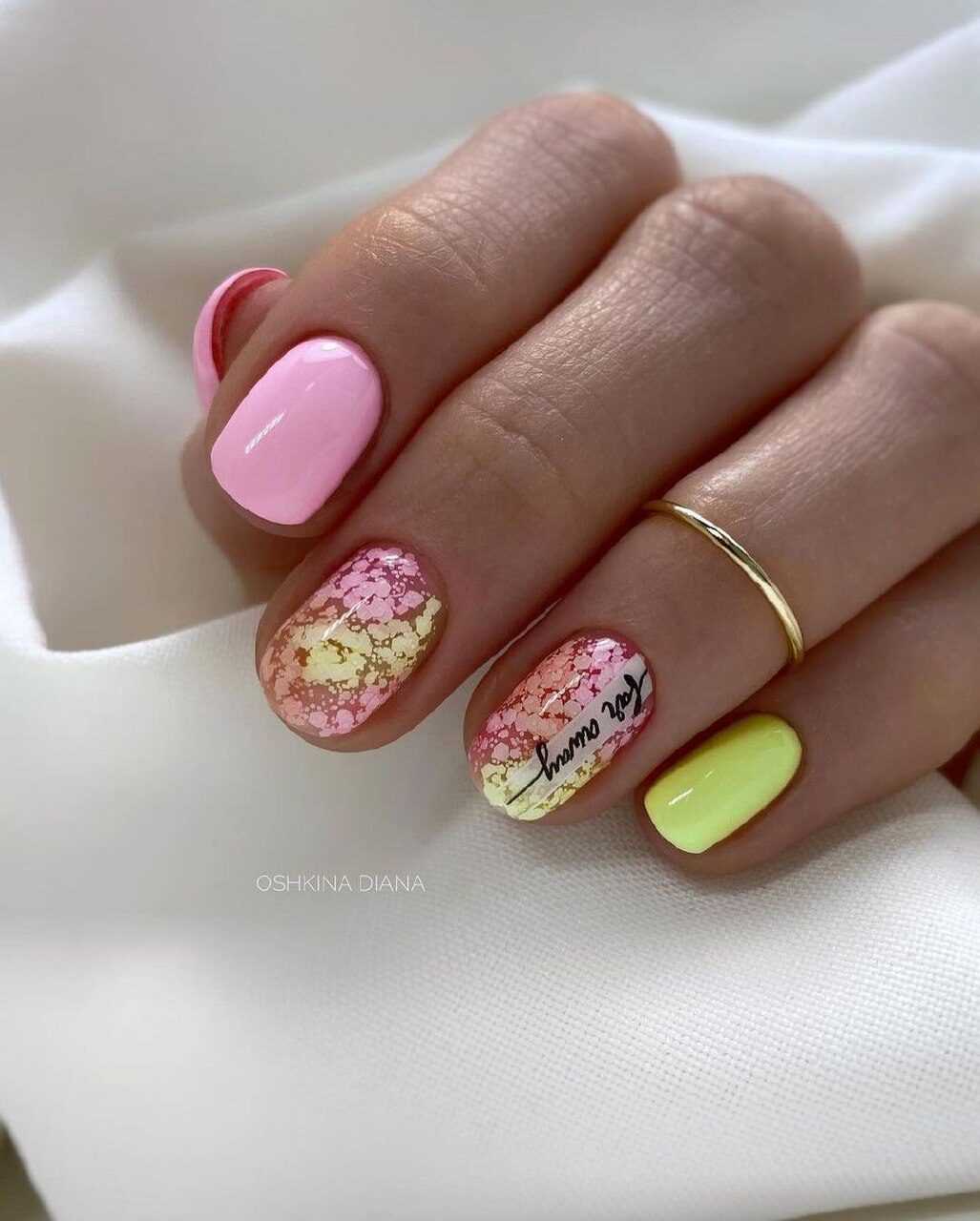 В сочетании с французским маникюром часто можно увидеть лунный дизайн. Такое решение не новое, впрочем яркая цветовая гамма позволяет преподнести оформление совершенно по-новому. В то же время, разнообразные летние принты также уместны в данном случае. Главное, чтобы они были оптимального размера и формы. В противном случае маникюр может выглядеть слишком сложно. А это, как известно, вовсе не всегда смотрится достойно.