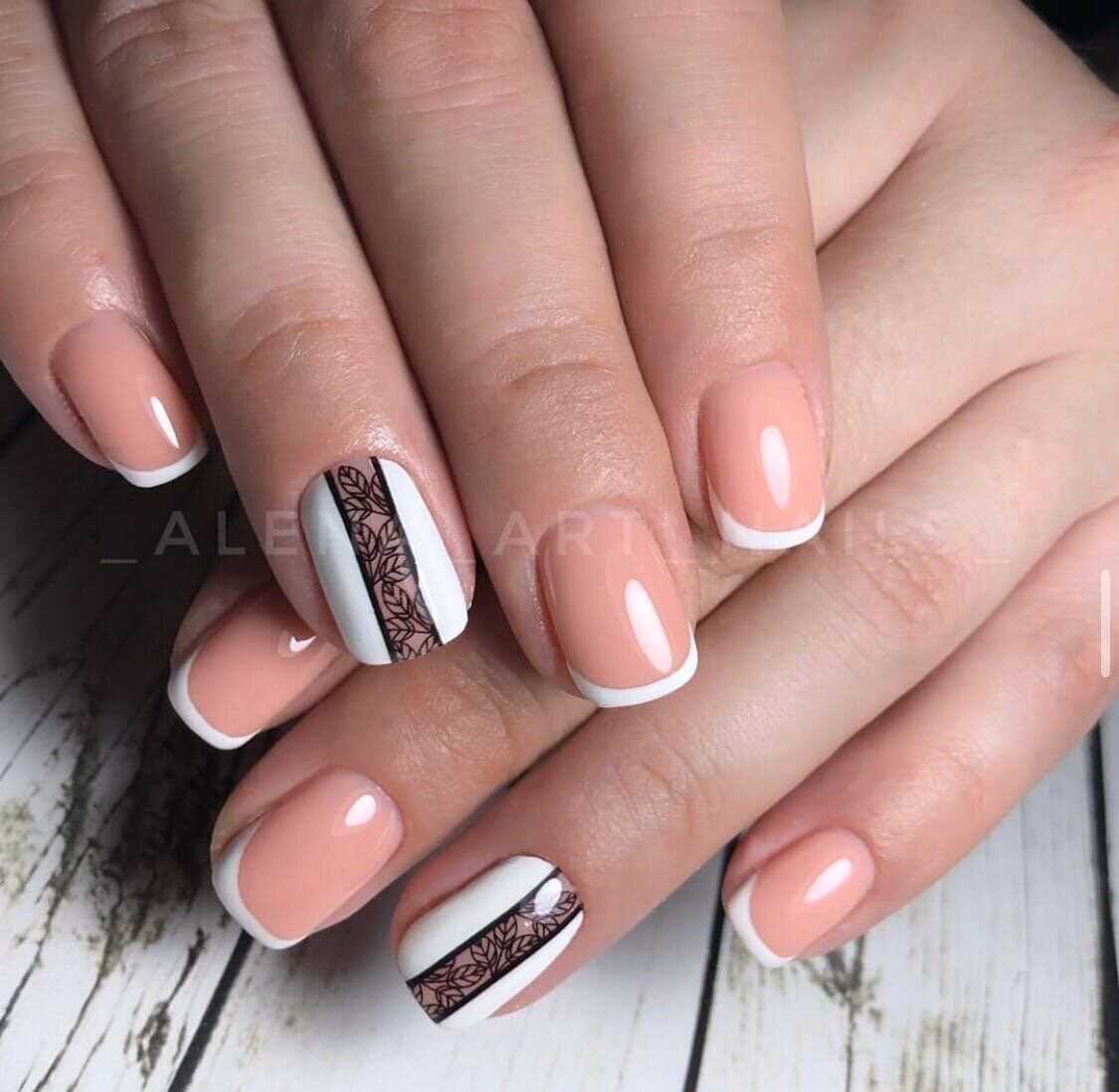 Белый лак в дизайне маникюра одновременно считается базовым и достаточно многогранным, ведь в его компании в полной мере раскрываются любые цвета и оттенки. Поэтому его обязательно можно и нужно использовать для создания одной из шикарных идей весеннего маникюра. Применяется белое покрытие в качестве фона, на который наносятся различные изображения и дополнительный декор. А выбор рисунка и украшений в этом случае полностью зависит от желания барышни, ведь на таком безупречном полотне ярко и красиво смотрятся даже самые лаконичные идеи. Любительницам романтики можно украсить несколько пальчиков модульной картинкой, с изображением поющей на ветвях дерева птичкой или забавным зайцем. Для более уверенных в себе красоток, приемлемо украшать маникюр чёткими геометрическими узорами либо абстракцией. Пару блестящих акцентов в виде кусочков фольги, прорисовка узоров при помощи жидкого глиттера или стразы станут идеальным завершением любой композиции.