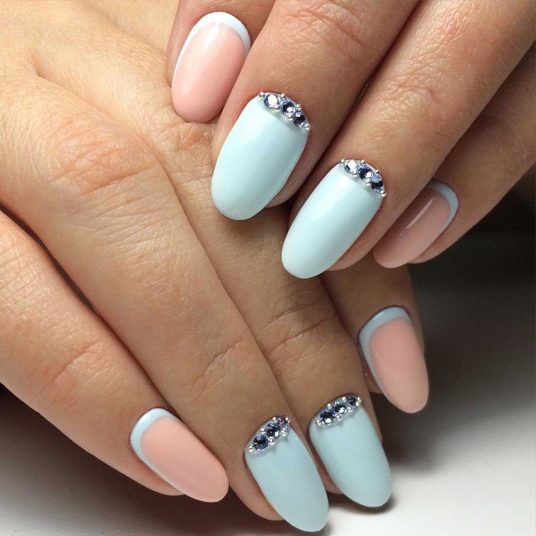 Если вы решили сделать камни и стразы основным акцентом дизайна, то добавляйте их в однотонный дизайн или французский маникюр. Помните, что камни будут занимать бОльшую часть вашего дизайна, поэтому не стоит добавлять в маникюр какой-либо другой декор, например, слайдеры, надписи, стемпинг.