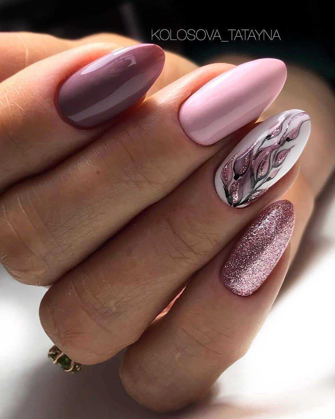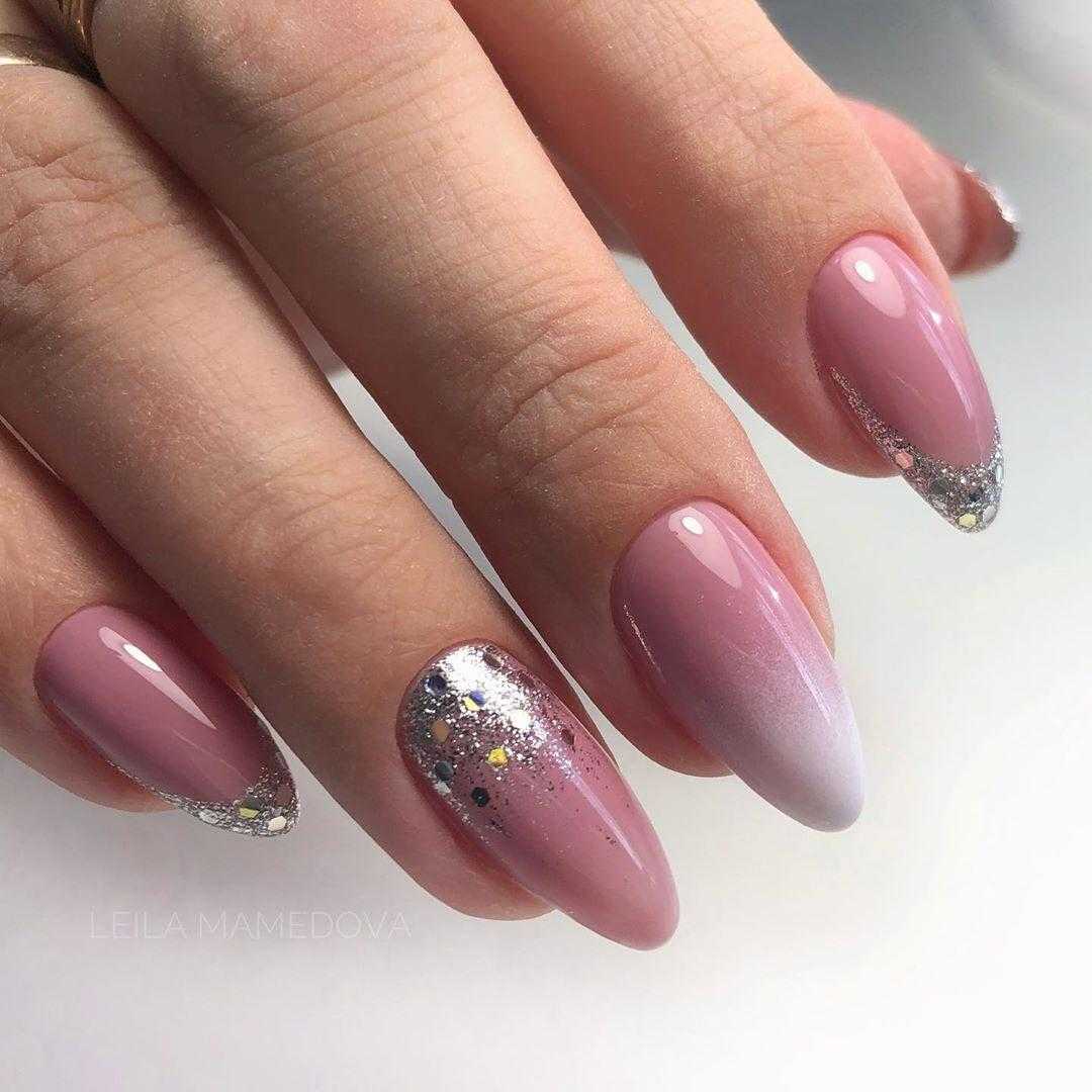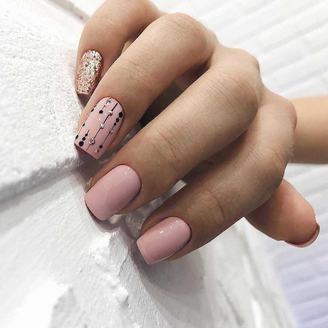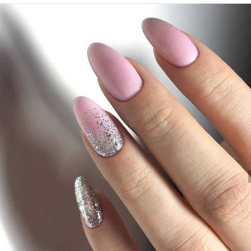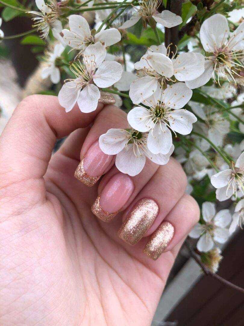 Розовый цвет гармонирует не только с классическим серебряным оттенком, но и с золотым. Визуально оттенки похожи, поэтому отлично смотрятся в одном нейл-арте. Розовый маникюр с блестками – популярный тренд 2020 года. Оттенки смотрятся очень нежно и женственно, а блестки добавляют маникюру торжественные и яркие нотки.