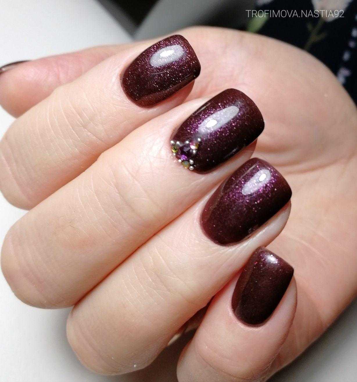 Стильные вариации бордового маникюра со стразами на длинные ногти