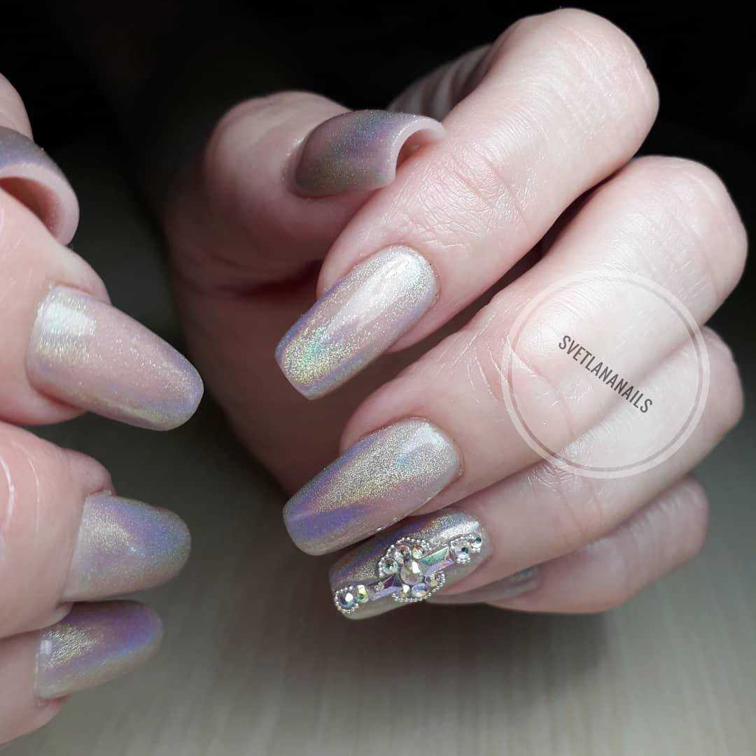 Нежный маникюр – это не просто модная тенденция, но и очень удобный вариант для повседневной жизни. Для дизайна можно использовать привычные элементы: блёстки, слюду, бархатную пудру и т.д.