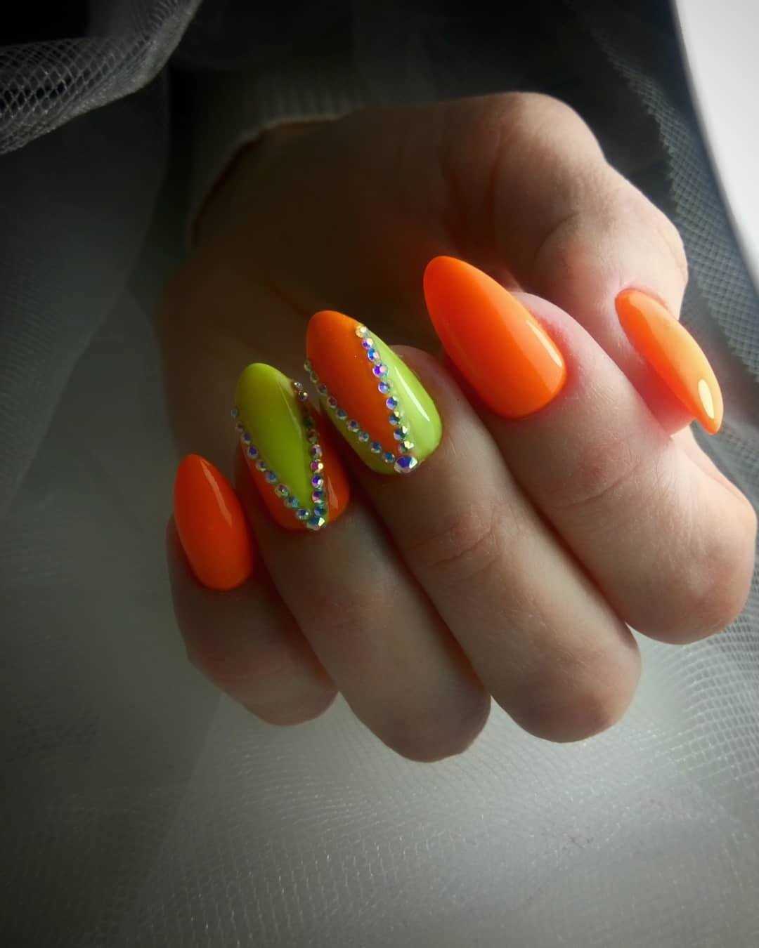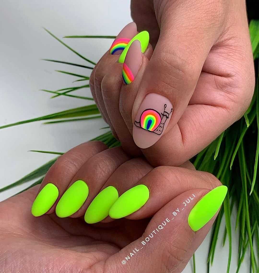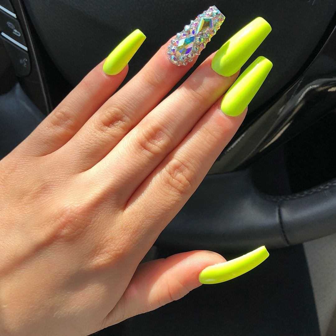 - маникюр с неоновым лаком роскошнее всего смотрится на коротких ногтях или на ногтях средней длины;