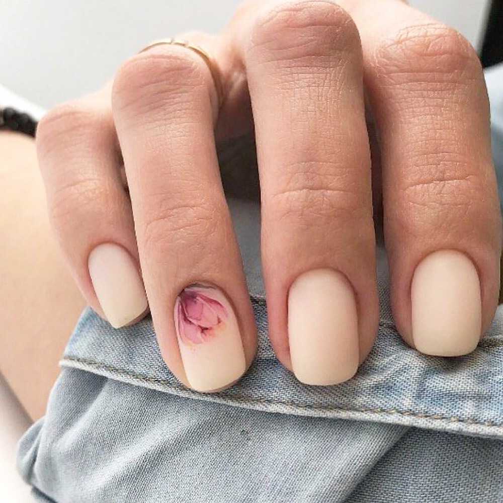 Маникюр акварельными красками смотрится невероятно нежно и воздушно. Благодаря использованию специальной акварели рисунок получается легким и полупрозрачным с эффектом градиента. На фото ниже вы можете видеть пример такого стильного и нежного нейл-арта.