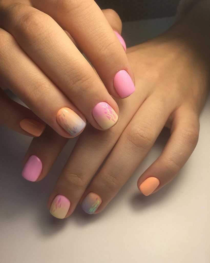 Лунный маникюр смотрится привлекательно и стильно на любой длине, поэтому вы можете смело использовать любые его вариации для создания модного весеннего нейл-арта на коротких ноготках. И использовать в этом случае можно самые необычные сочетания цветов, техники и виды декора