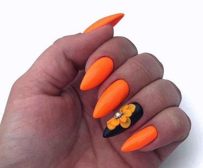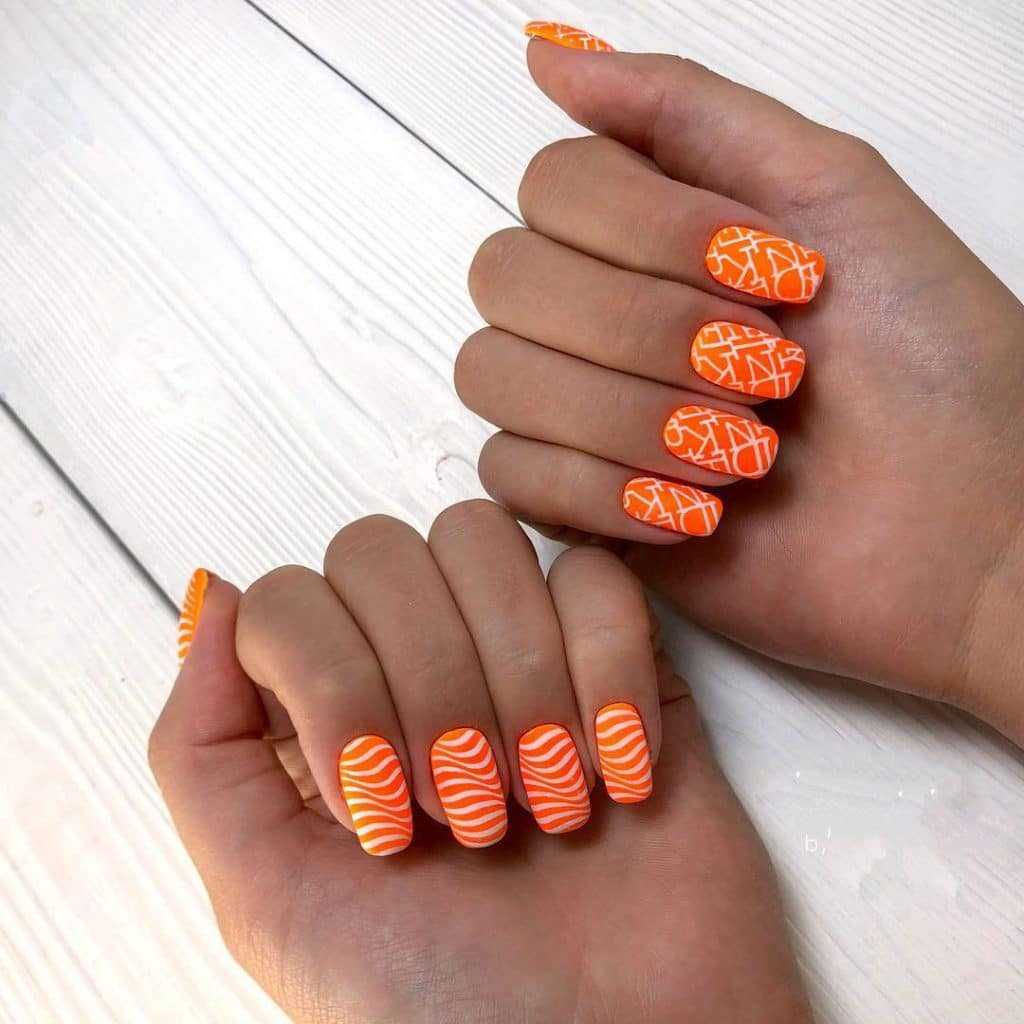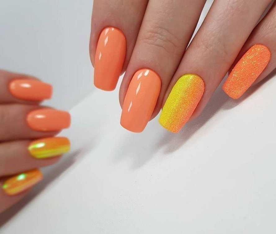 Новинки оранжевых ногтей 2020, новые образцы форм