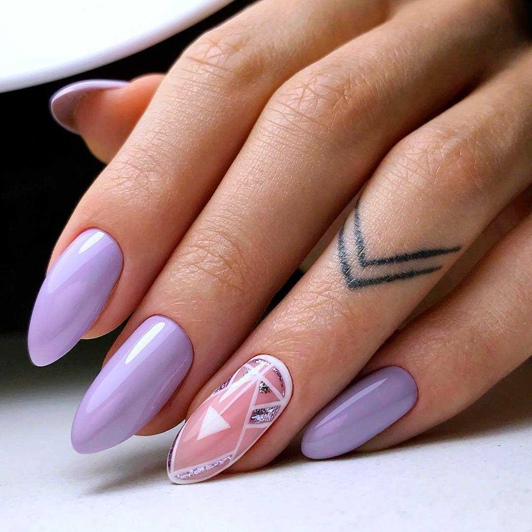 Точки, полосы, а также геометрические фигуры — все это выглядит невероятно красиво и современно. С таким дизайном можно проявить свою фантазию и создавать самые необычные узоры на овальной форме ногтей.