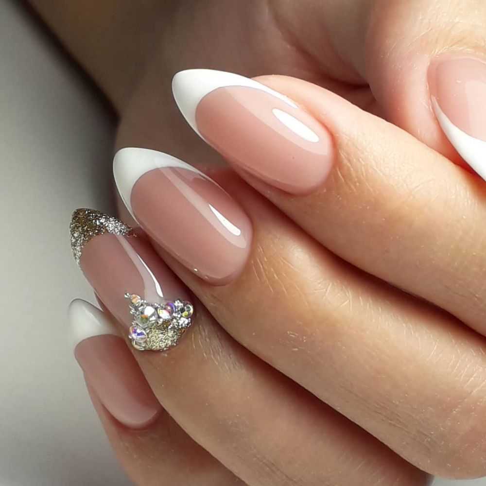 Востребованная форма ногтей для маникюр-2021 со стразами и блестками