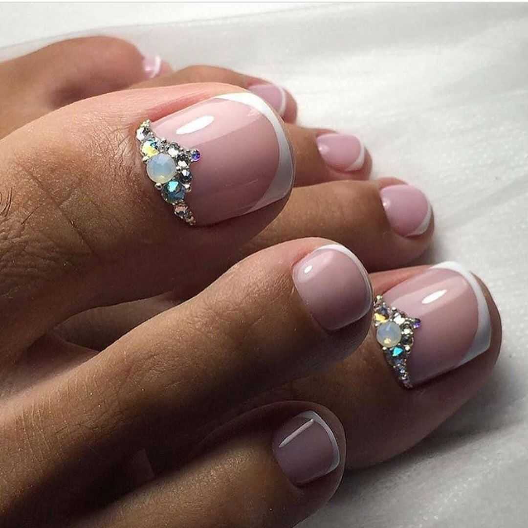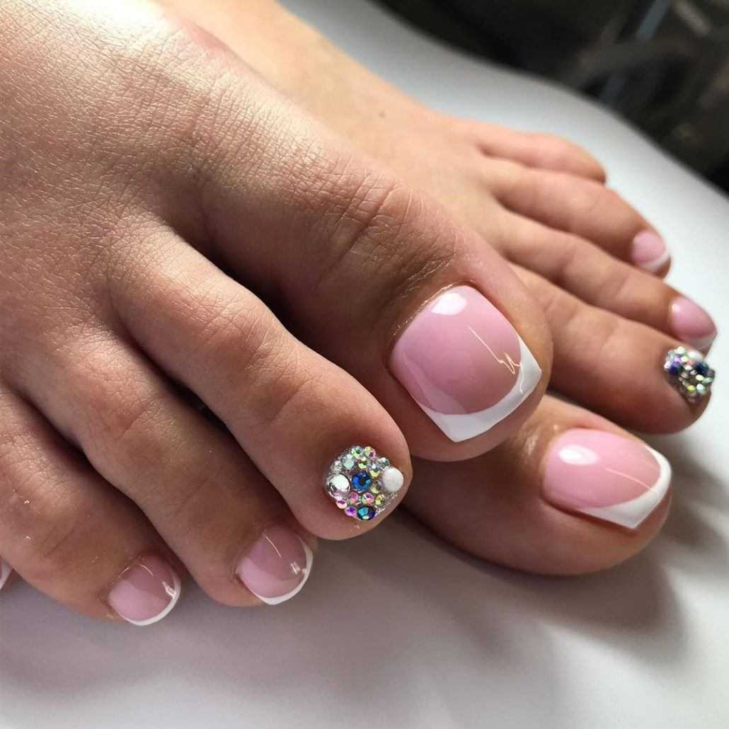 Для девушек, которые привыкли блистать, необходимо подбирать и соответствующий яркий педикюр. В таком случае невозможно обойтись без дополнений в виде разноцветных стразов разных размеров, хрустальной крошки, стильных бульонок или камешков. Привлекательный и броский дизайн со стразами выглядит шикарно при осуществлении педикюра для вечернего выхода, так ножки смотрятся еще нежнее и красивее. Переливающийся педикюр со стразами можно смело выполнять на протяжении всего 2020 года. При этом можно лишь заменять основной тон нейл-арта, тип, размер и цвет стразов. В любом случае дизайн педикюра получится женственным и элегантным.