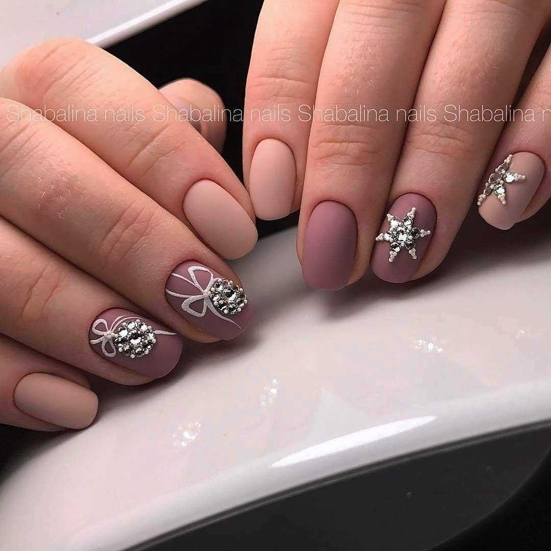 Нюдовые ноготки, да ещё и в компании с матовой структурой – это всегда максимально спокойно и лаконично, поэтому дизайнеры рекомендуют обязательно использовать в оформлении не только классические стразы, но и другие виды декора, например, металлизированные полоски, бусины, жемчужные полусферы и прочие материалы. Это могут быть всевозможные вариации дуги у основания нескольких ноготков, сложная композиция на безымянном пальчике или одиночные украшения на каждой ногтевой пластине. Всё зависит от вашего настроения и предпочтений. При этом для создания маникюра может использоваться как один, так и несколько нюдовых оттенков одновременно, а также белый, чёрный и другие цвета.