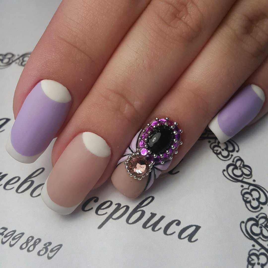 В процессе оформления ноготков можно использовать несколько оттенков. Благодаря чему маникюр получается более оригинальным и интересным. Отлично смотрится розово-фиолетовое покрытие. Такой маникюр отражает нежность и романтичность образа в любое время года
