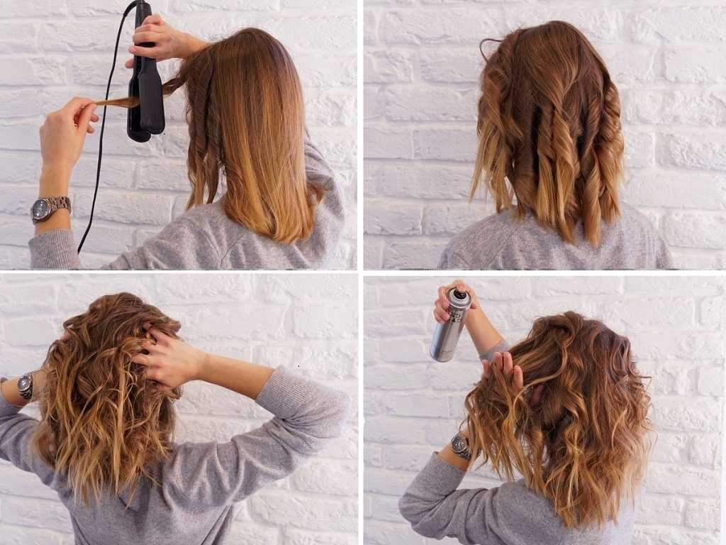 Легкие волны можно сделать с помощью утюжка или плойки, при этом не забывайте о качественной термозащите. Пряди нужно завивать от лица, а начинать завивать нужно с затылка. Можно скреплять каждый полученный валик невидимками, потом в конце раскрутить все валики и уложить волосы руками. Фото ниже помогут вам сделать идеальные локоны дома.