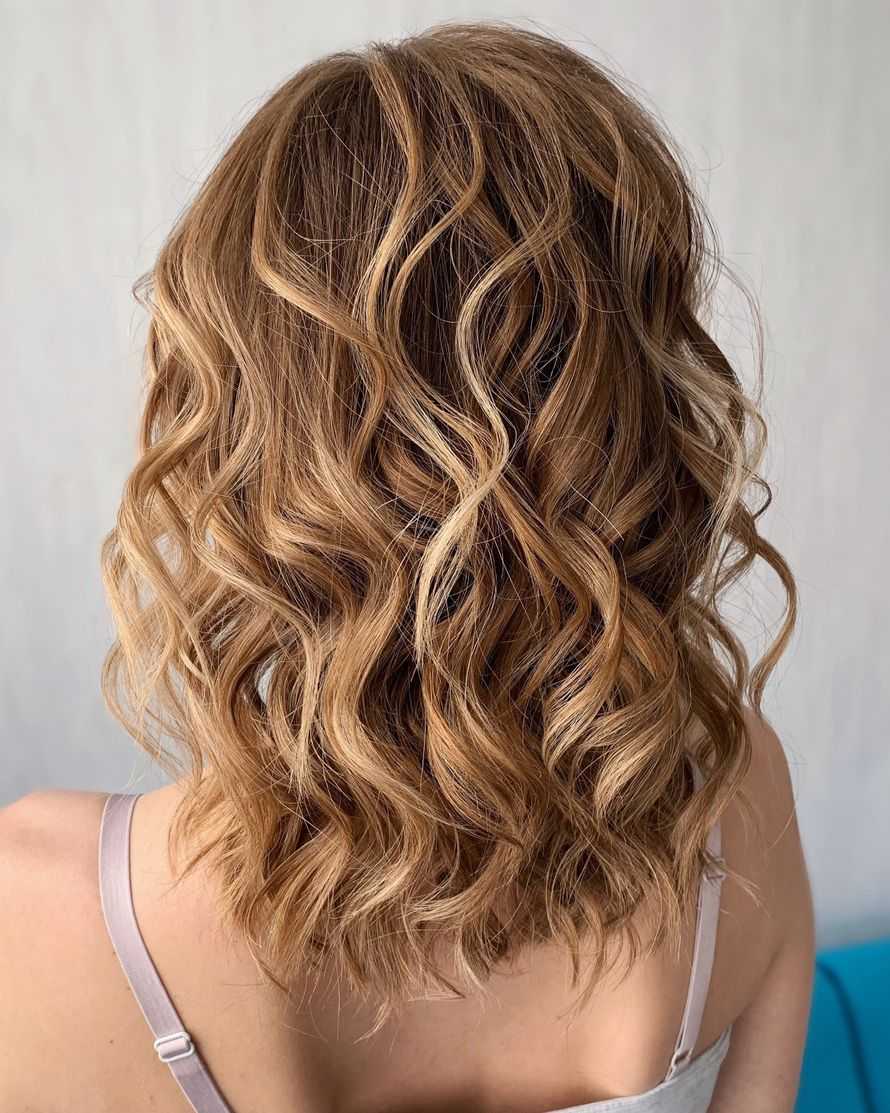 На средней длине можно создать локоны не только с помощью плоек, бигуди. Допустимо использовать папильотки, утюжок, в салоне применить химическую или биозавивку, а также карвинг.