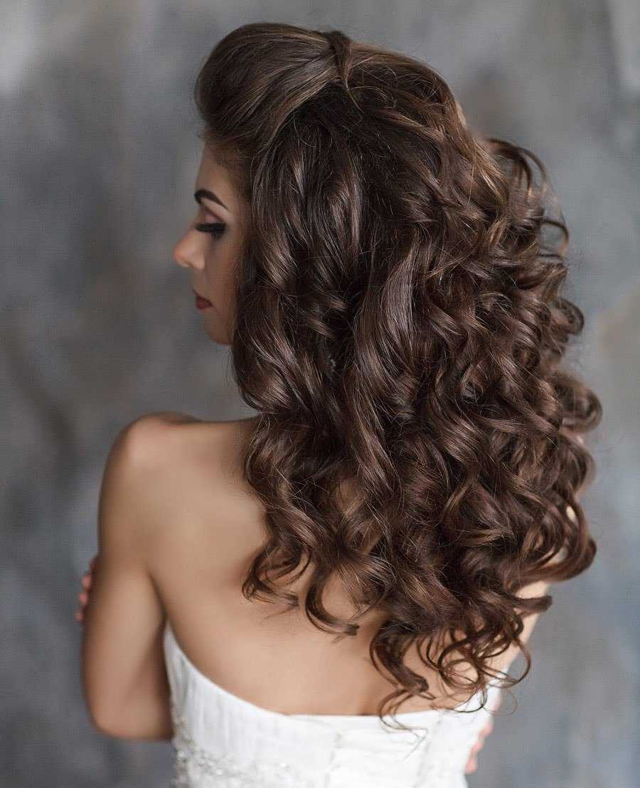 На длинных, густых, красиво смотрятся прически, которые сохраняют объем со спиралевидными, зигзагообразными пружинящими кудряшками.