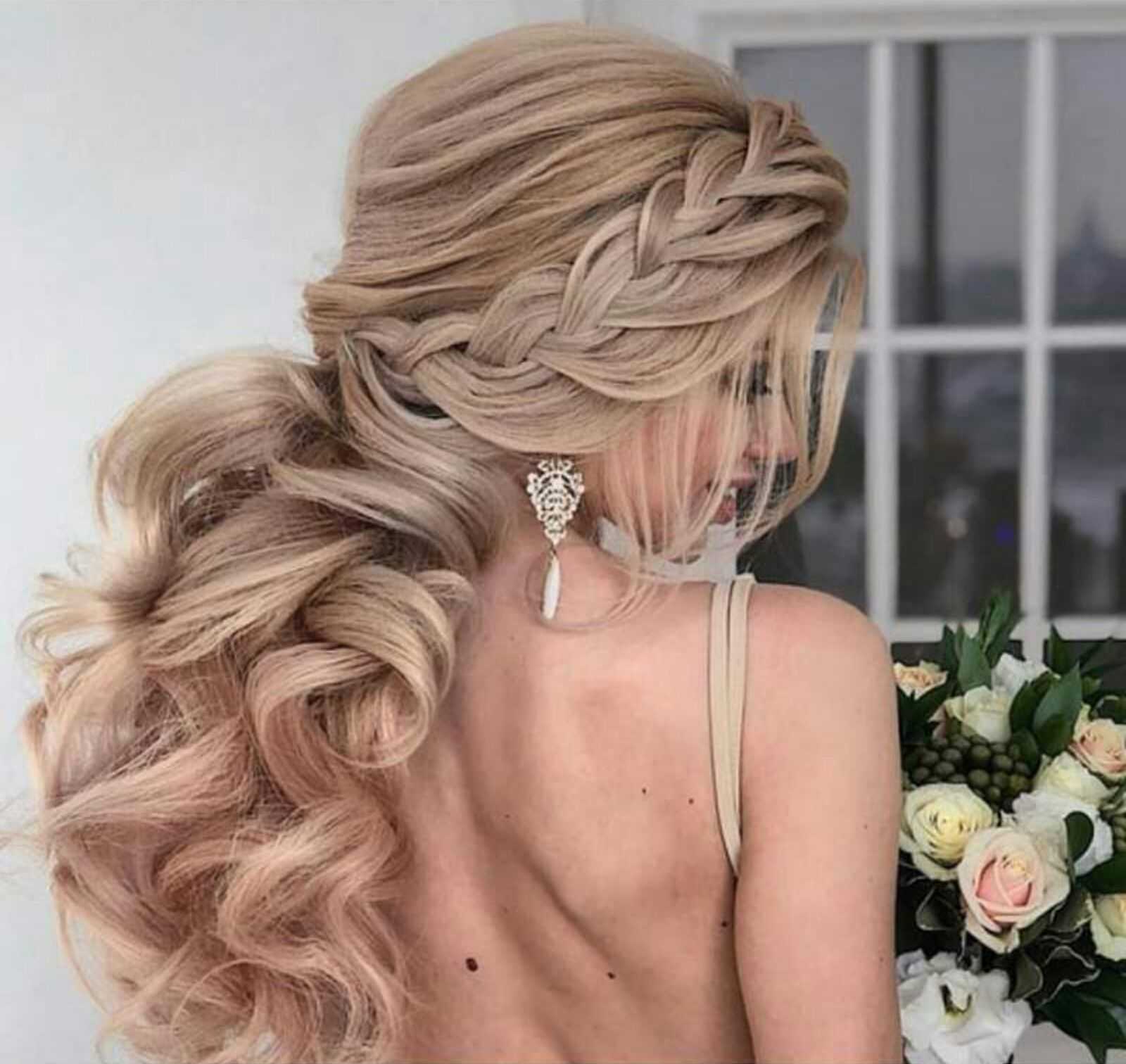 Выбор той или иной прически зависит от вечернего наряда. Под длинное платье в пол хорошо смотрятся ретро-укладки с волнами, прически с объемными пучками и выпадающими на лицо прядками. Под короткое коктейльное платье выбирайте укладку на бок, плетение с низким пучком, высоких хвост с начесом и т.д.