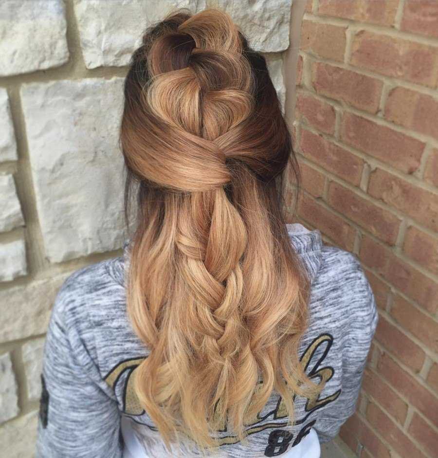 Распущенные и наполовину собранные подкрученные локоны также считаются торжественными вечерними укладками. Они подходят под любой наряд. Но следует помнить, что распущенные волосы должны выглядеть на все сто. Жирный блеск, секущиеся кончики и тусклый цвет погубят самую изящную прическу.